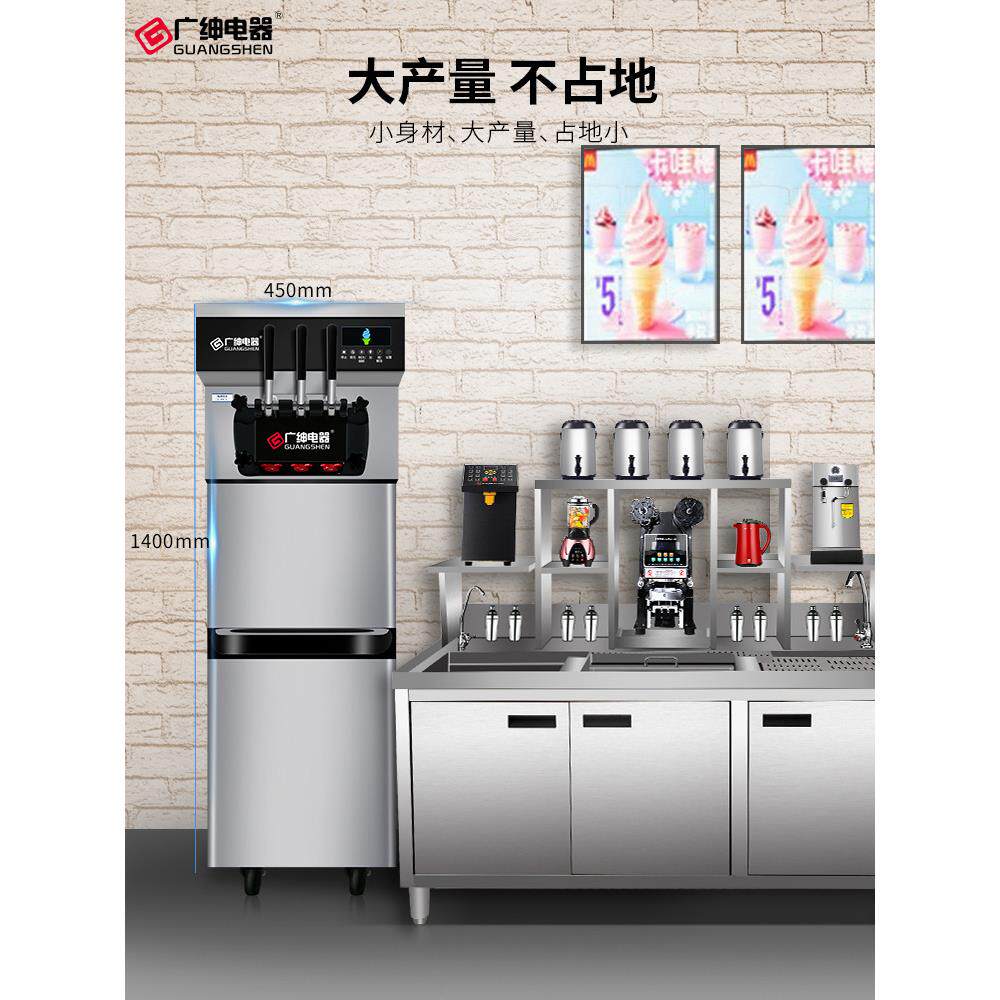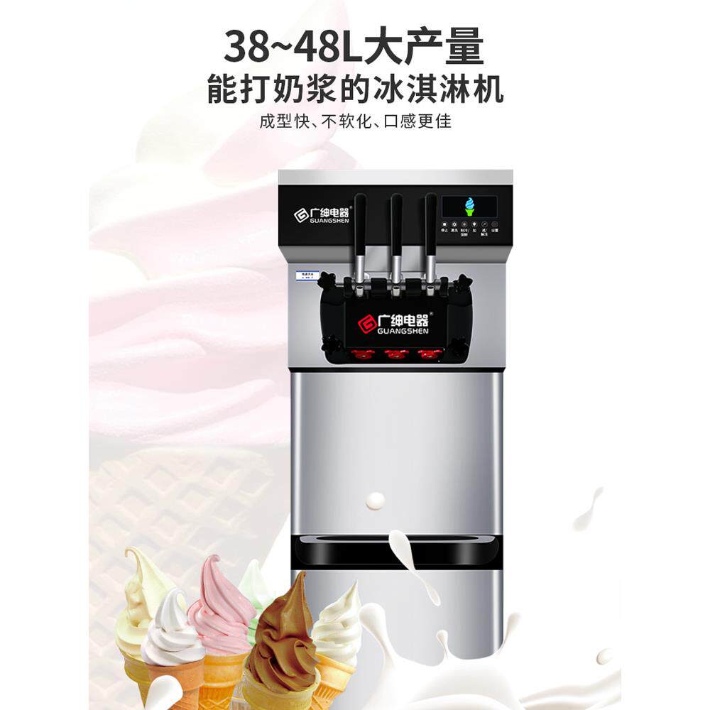 广绅电器冰淇淋机商用窄体软冰激凌机全自动雪糕机甜筒机立式三头
