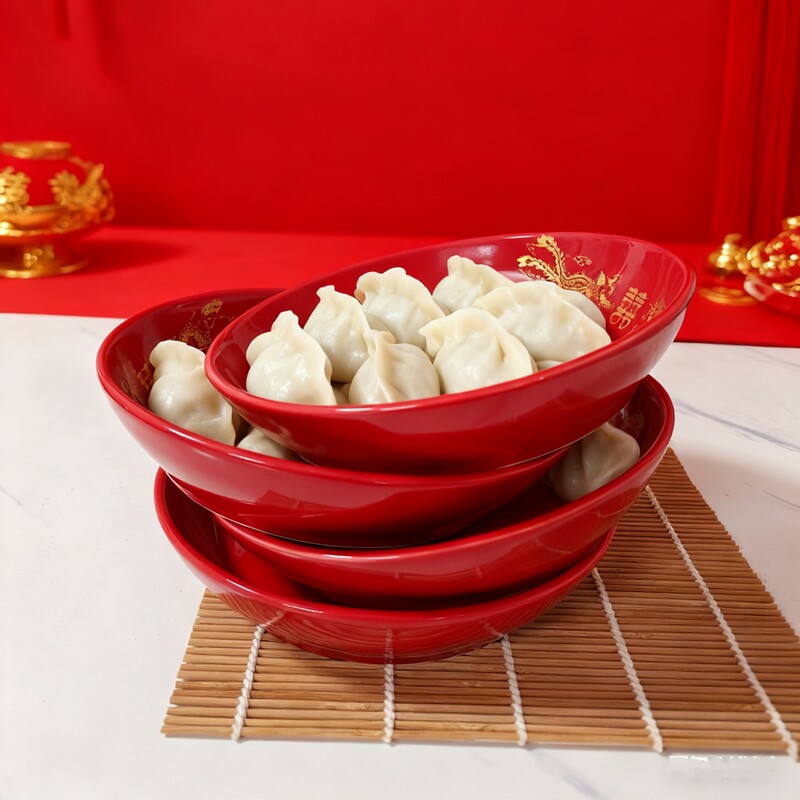 新中式红色喜字盘婚庆结婚订婚饺子盘陶瓷耐高温喜庆用品水果盘