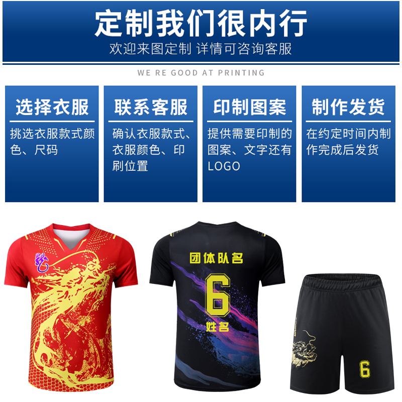 乒乓球服套装男女马龙许昕樊振东国家队比赛训练速干儿童龙服订做
