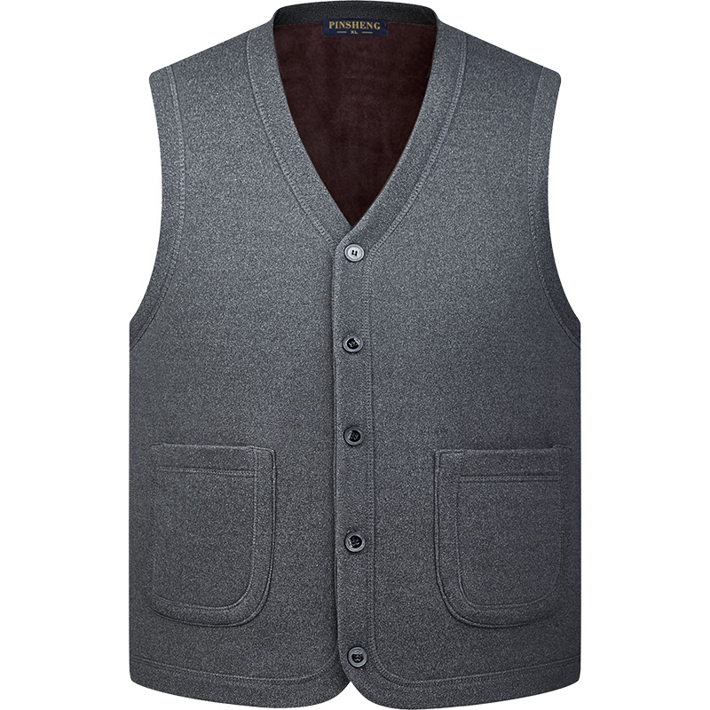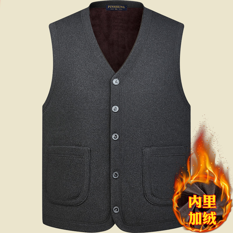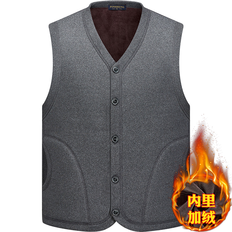 中老年男式加绒加厚背心爸爸冬季保暖坎肩纽扣款无袖开衫马甲宽松