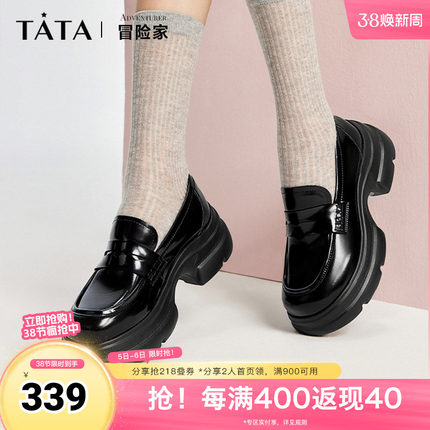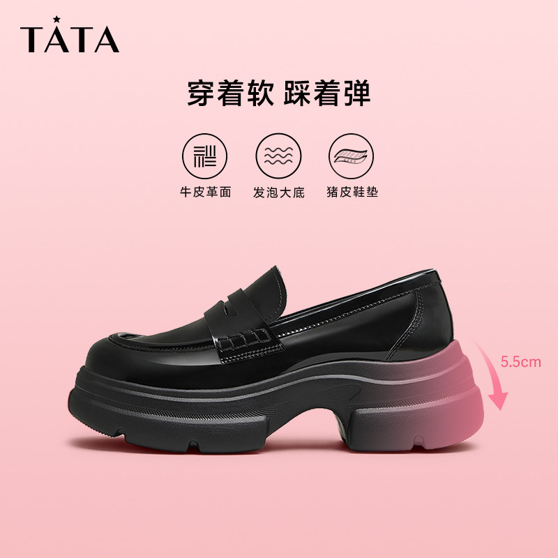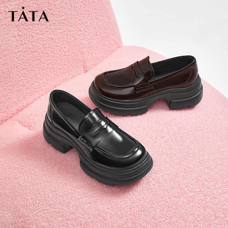 Tata他她冒险家厚底乐福鞋女鞋浅口单鞋小皮鞋2024秋季款7OL23CA4