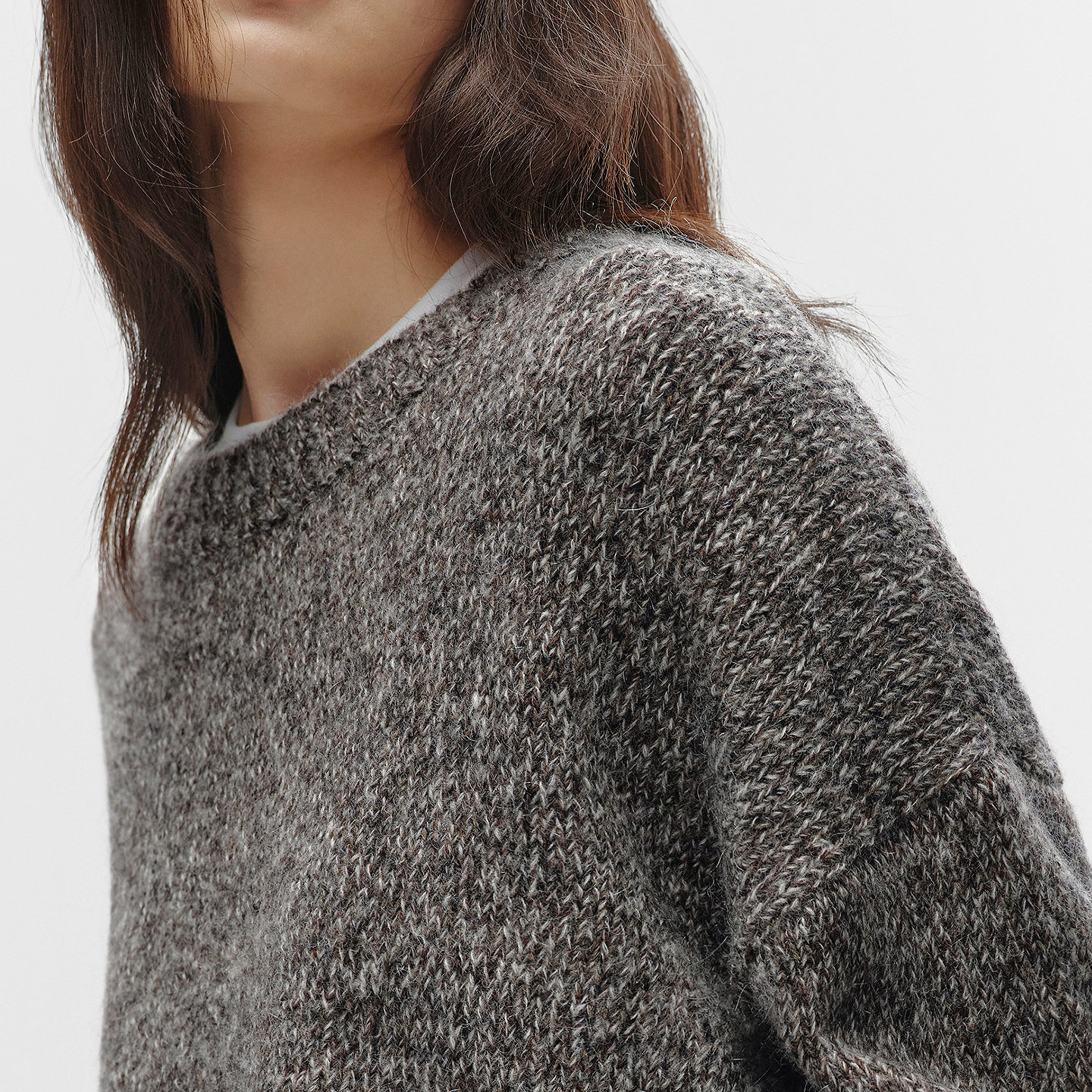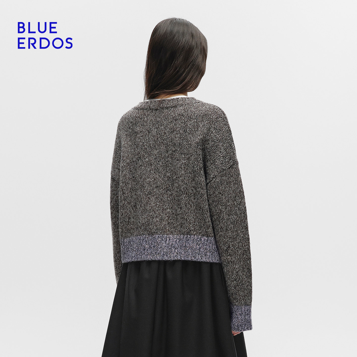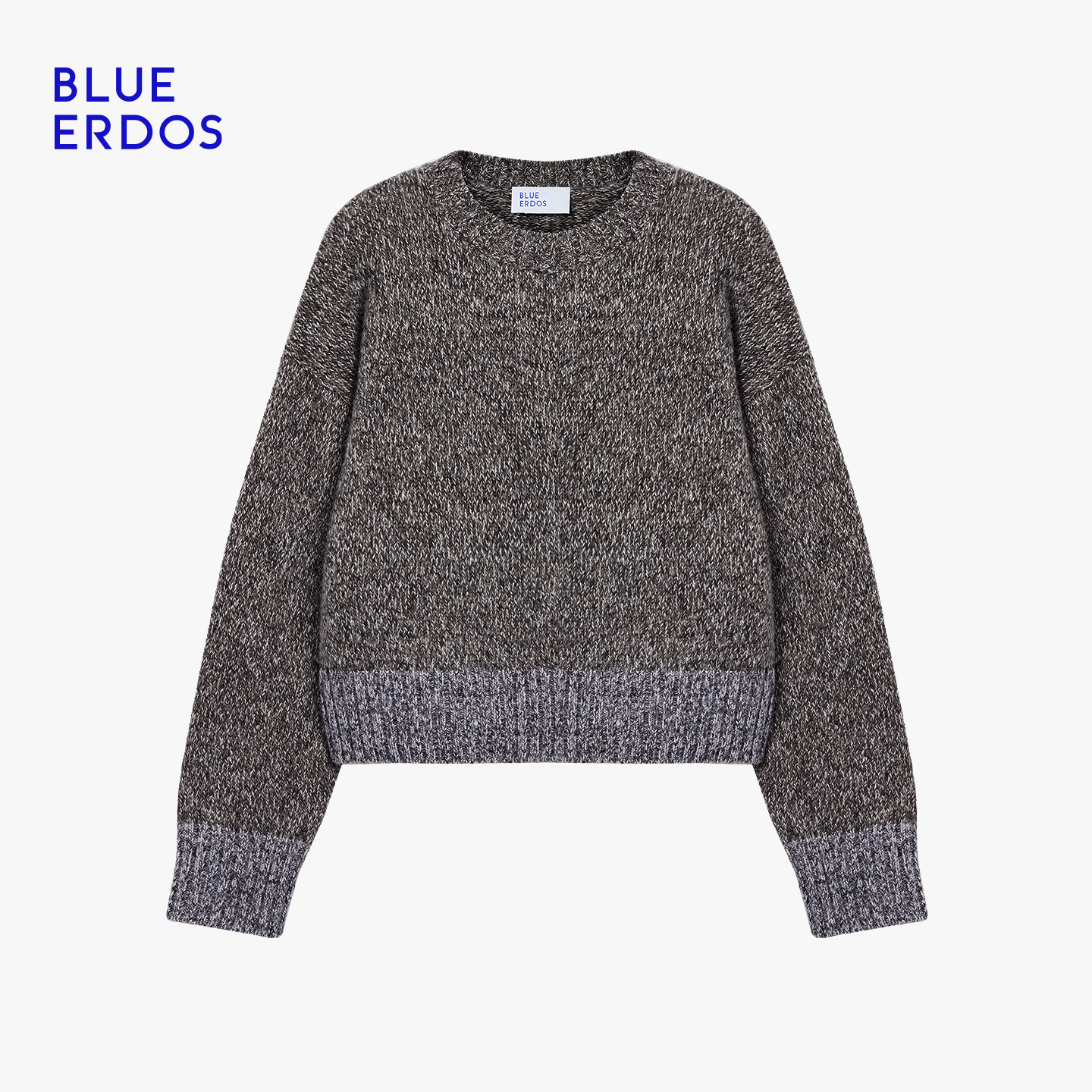 BLUE ERDOS冬季新品摩登质感羊毛混纺茶棕色圆领套头针织衫女