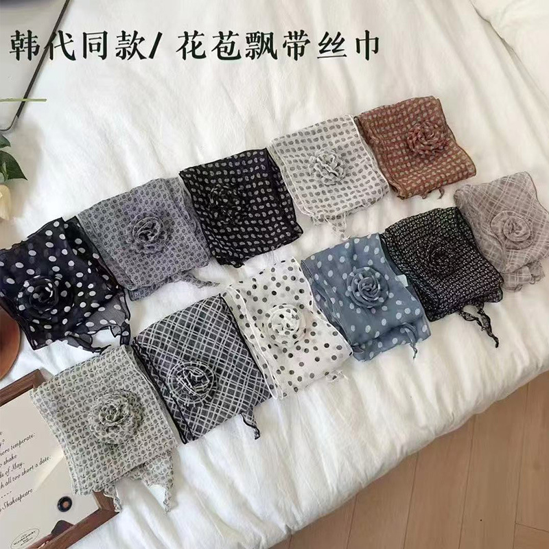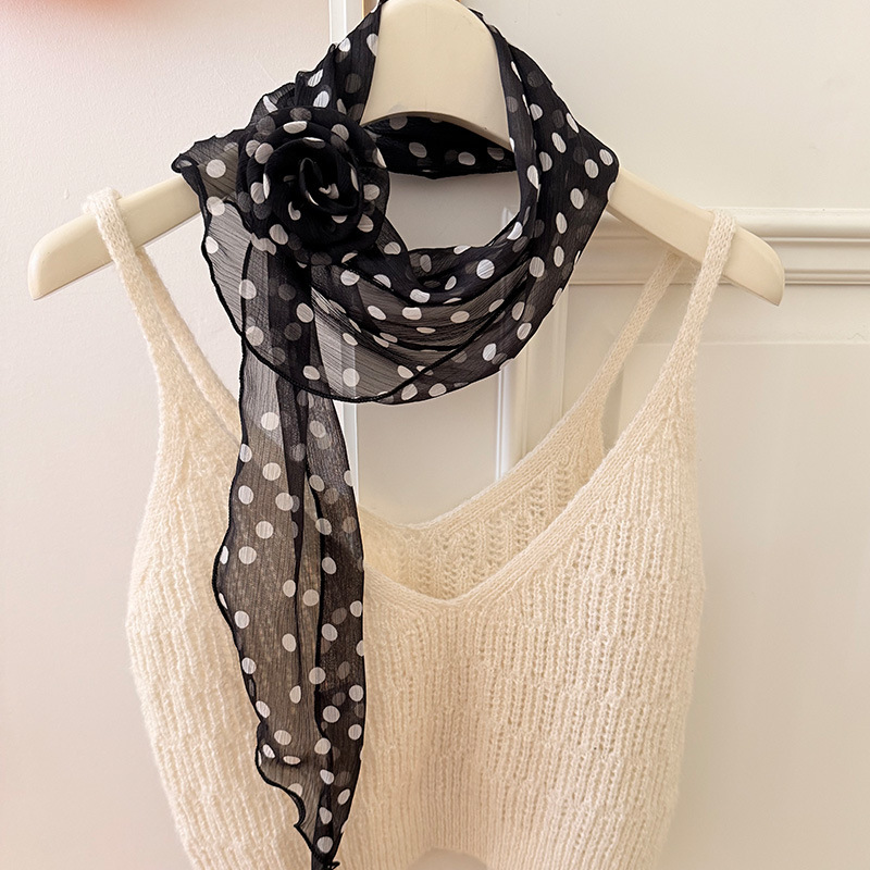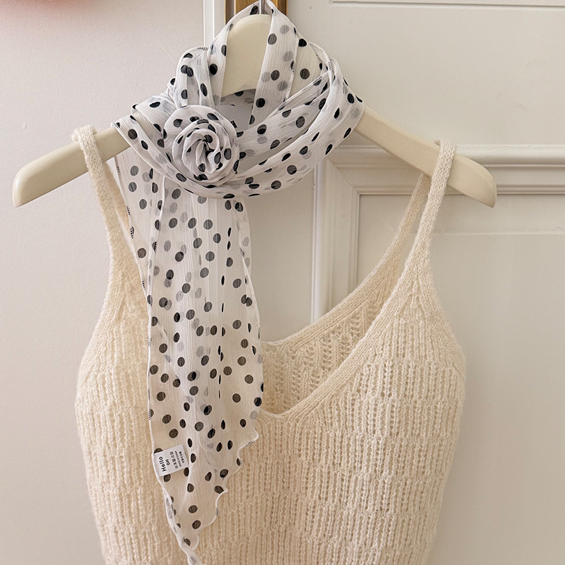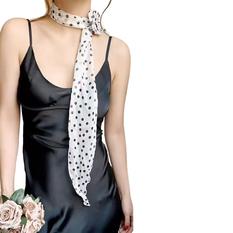棕色波点丝巾印花高级百搭配饰系脖女2025年新款发带绑发长条围巾