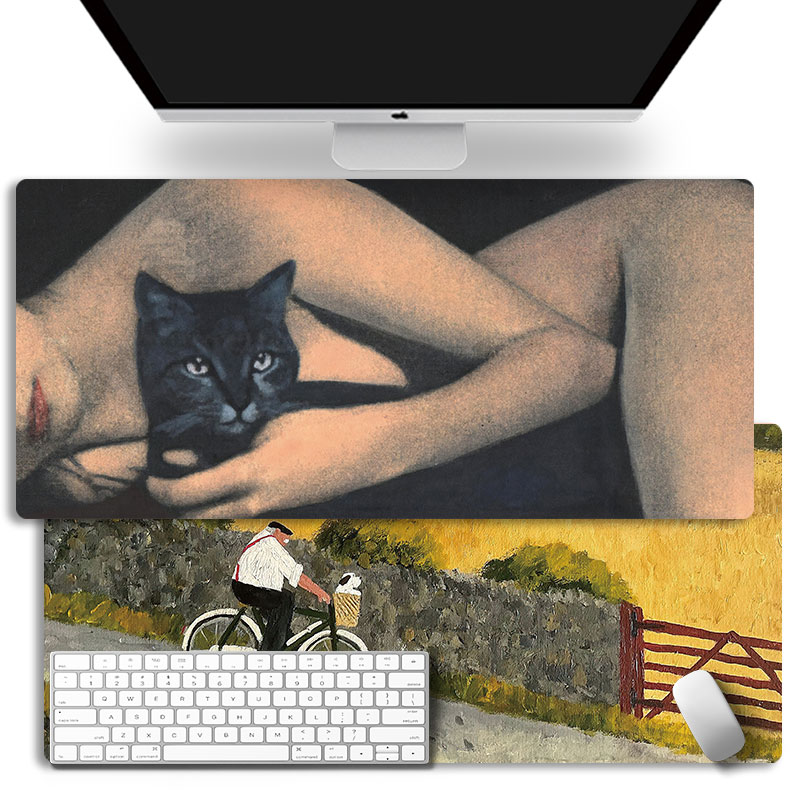 艺术猫咪超大天然橡胶鼠标垫锁边学生电脑键盘书桌垫办公室防滑