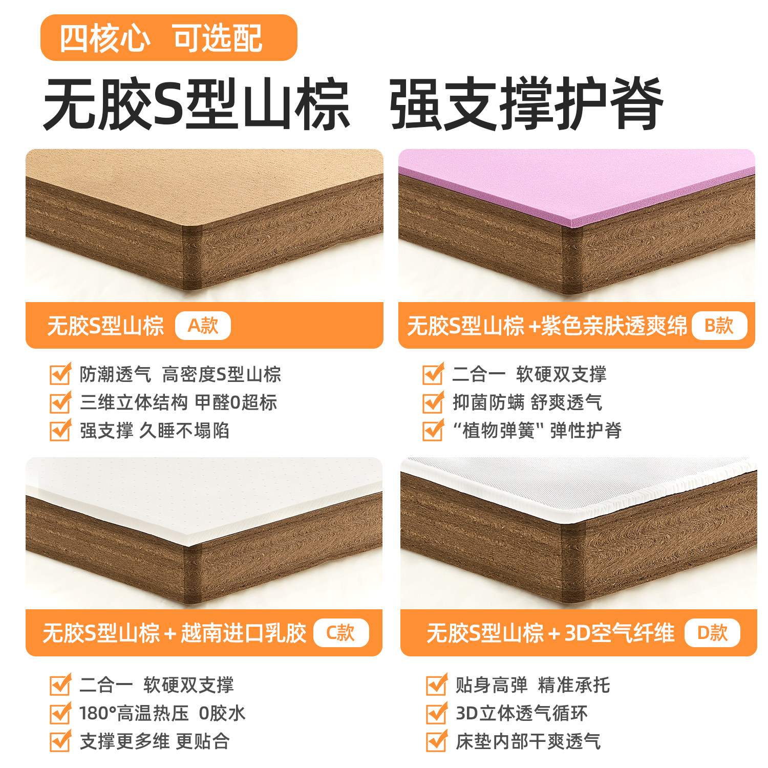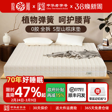 龙凤床垫环保山棕乳胶亚麻透气外套全拆护脊床垫薄双人棕榈硬定制