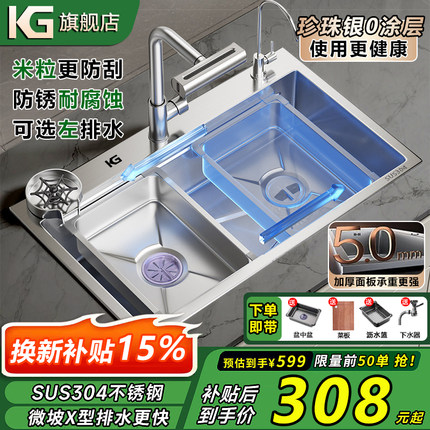 KG加厚304不锈钢水槽压纹蜂窝米粒厨房MM洗菜家用单槽加厚洗碗池