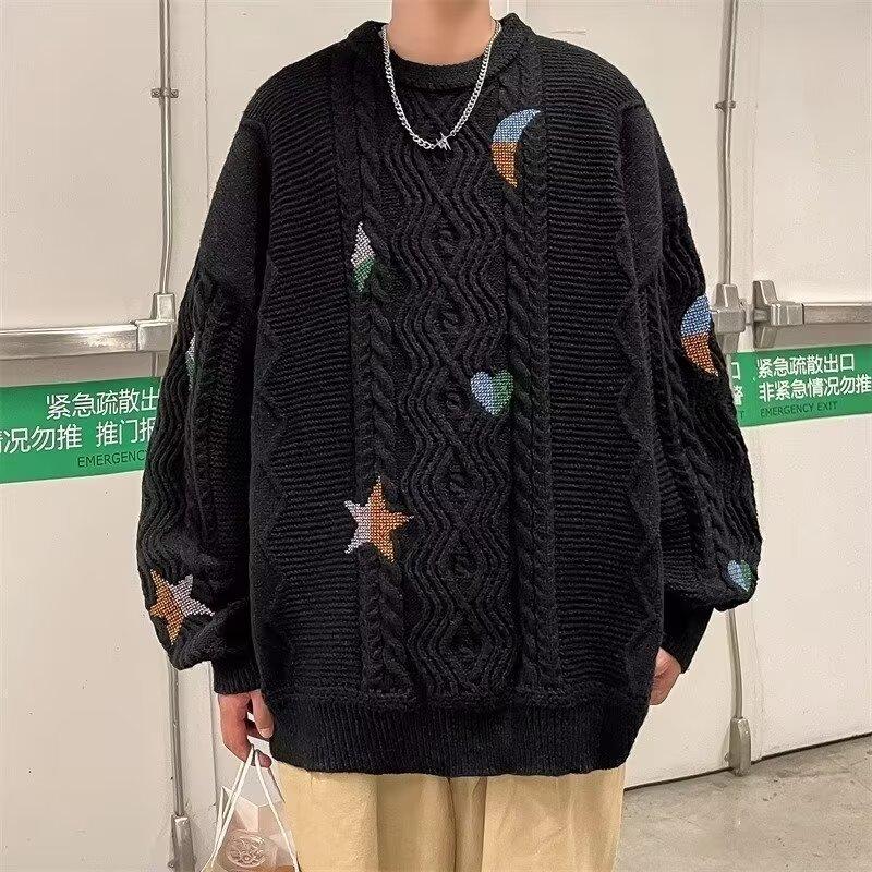 高街ins鹿毛绒针织衫男秋冬季大码潮流刺绣设计宽松痞帅毛衣