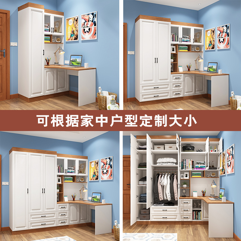 现代转角衣柜书桌一体组合电脑桌儿童卧室书柜带学习桌简约储物柜