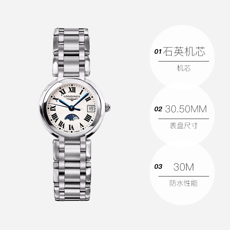 【自营】浪琴/Longines 心月系列 精钢 石英机芯 女士腕表 瑞士