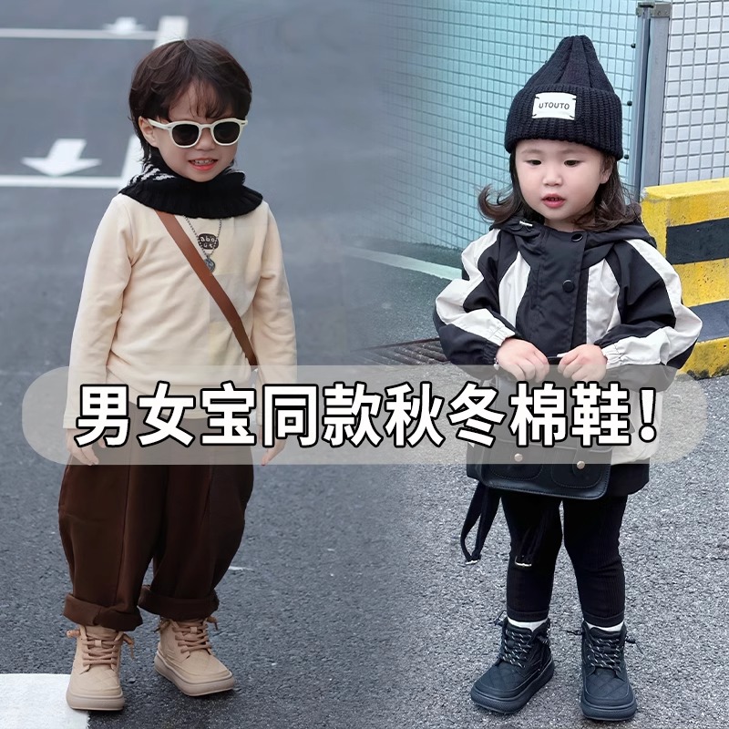 巴布豆儿童棉鞋女童毛毛鞋2025秋冬新款雪地靴男童鞋子二棉鞋加绒