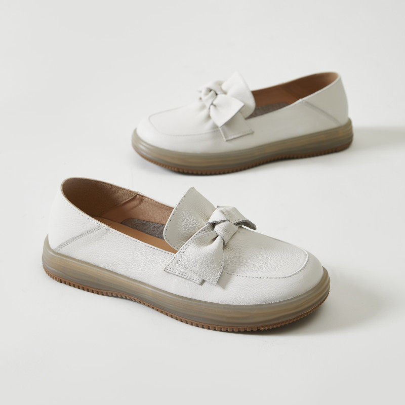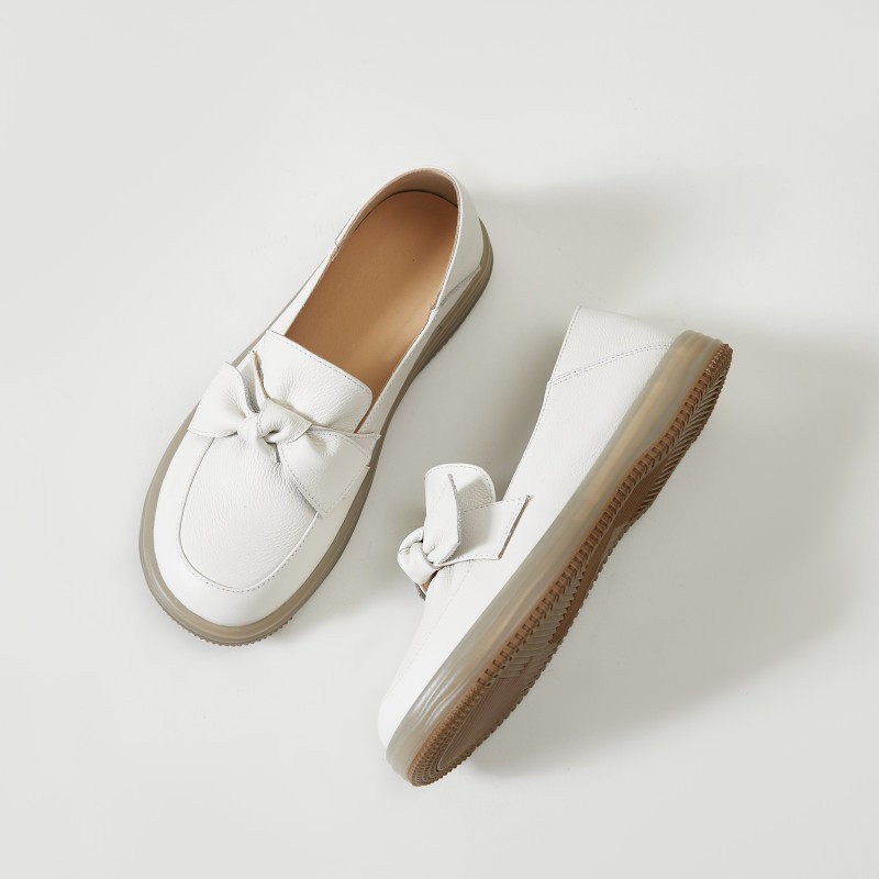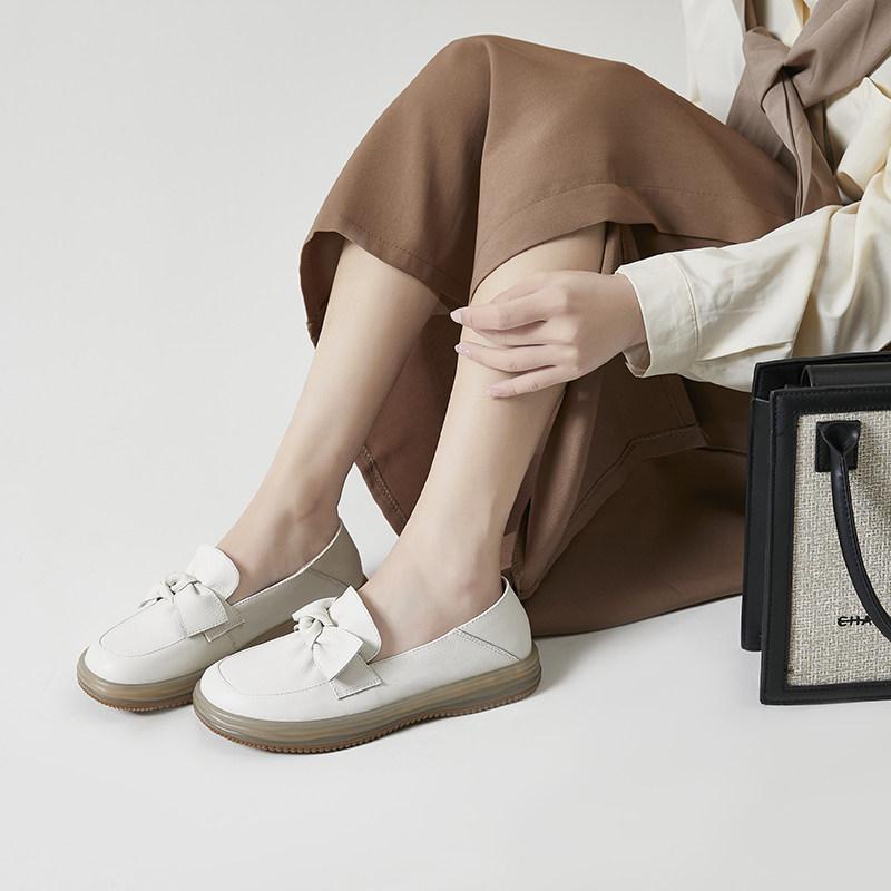 真皮蝴蝶结小皮鞋女两穿2025新款乐福鞋休闲百搭软底牛筋护士单鞋