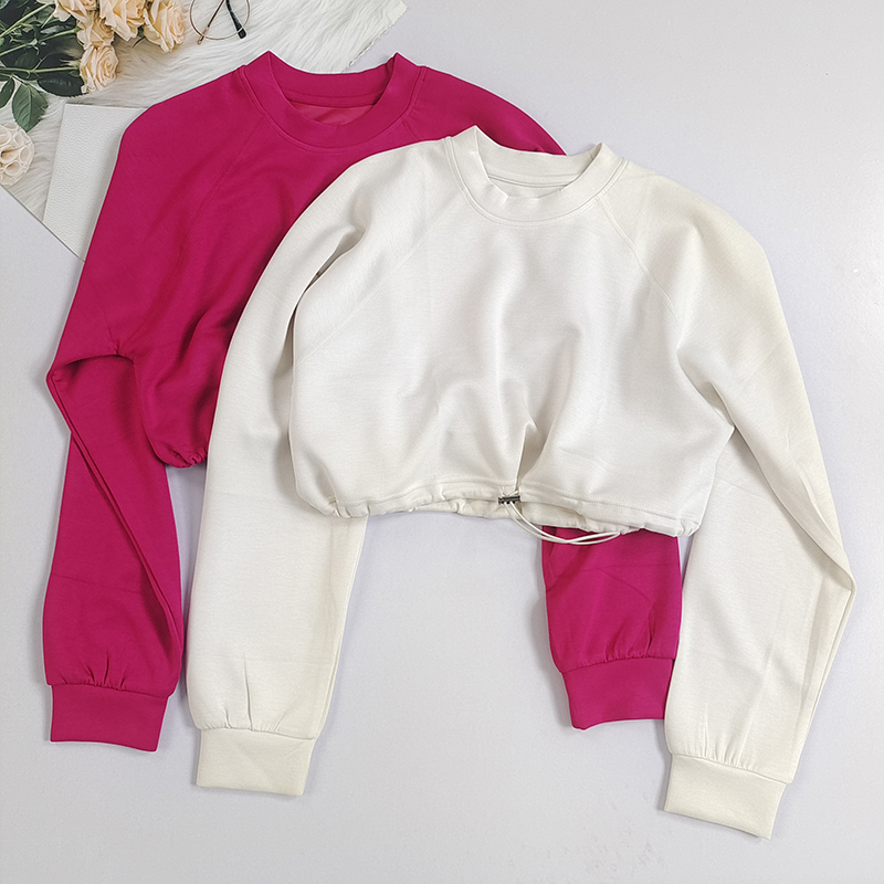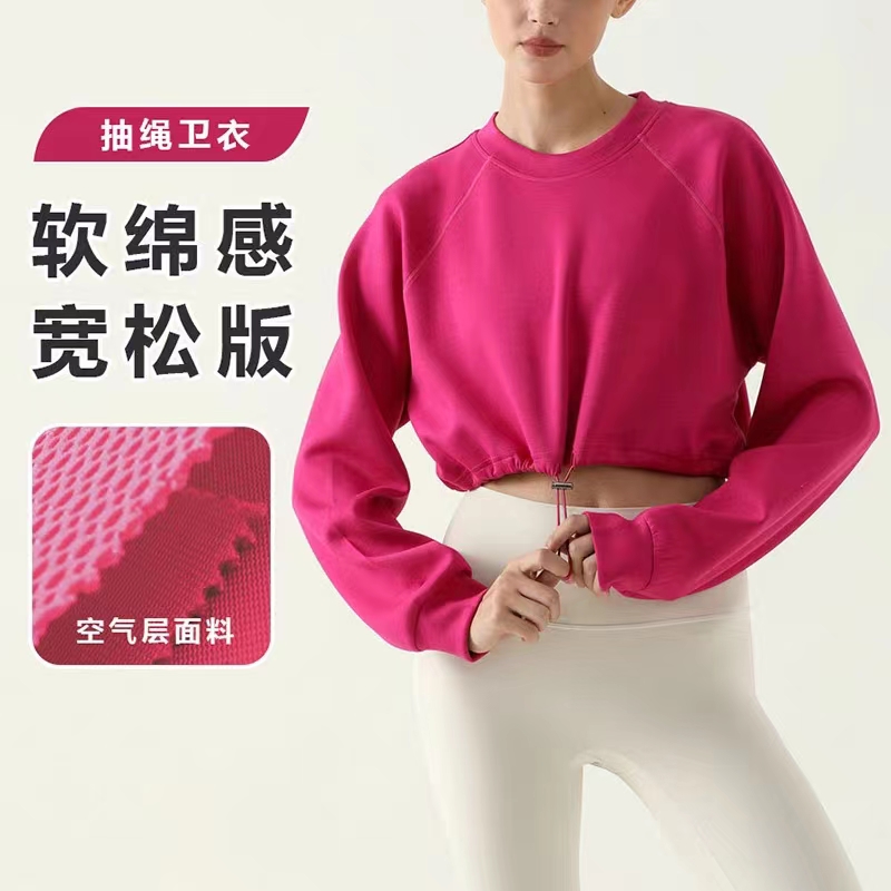 新款秋冬运动卫衣女短款露腰宽松遮肉上衣抽绳跳舞跑步健身瑜伽服