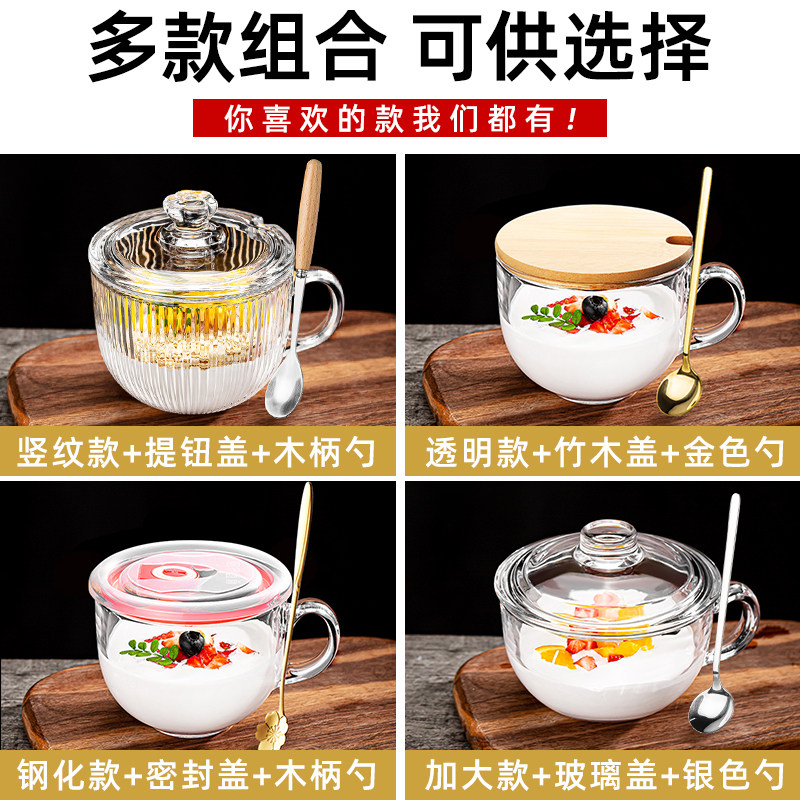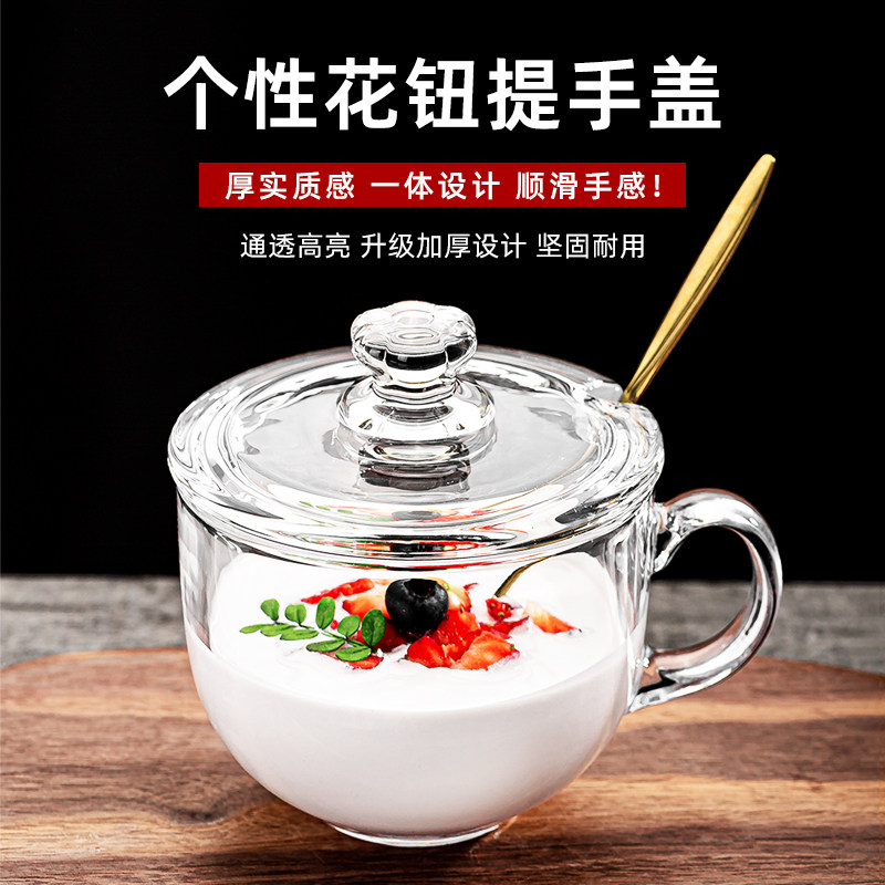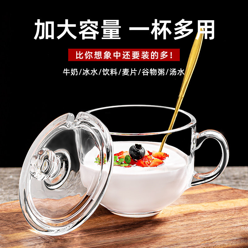 大容量早餐杯带盖勺玻璃杯子家用带把酸奶燕麦牛奶泡麦片碗女水杯