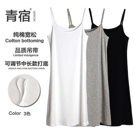 青宿 纯棉中长款吊带背心裙女内衬打底外穿百搭可调节夏季
