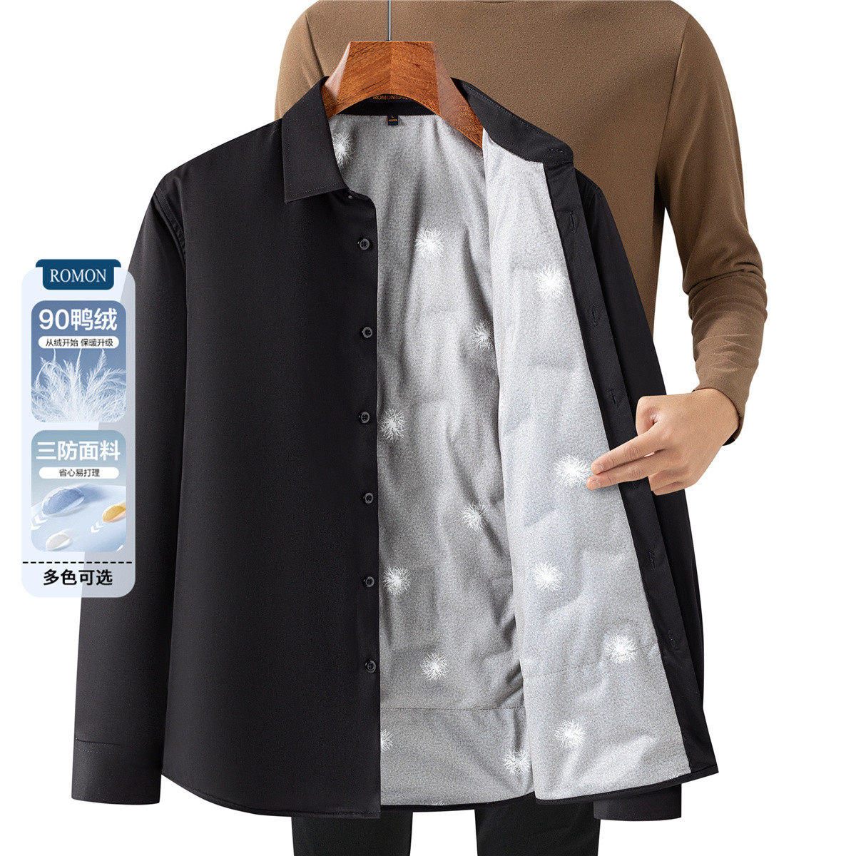 罗蒙三防羽绒保暖加厚长袖衬衫