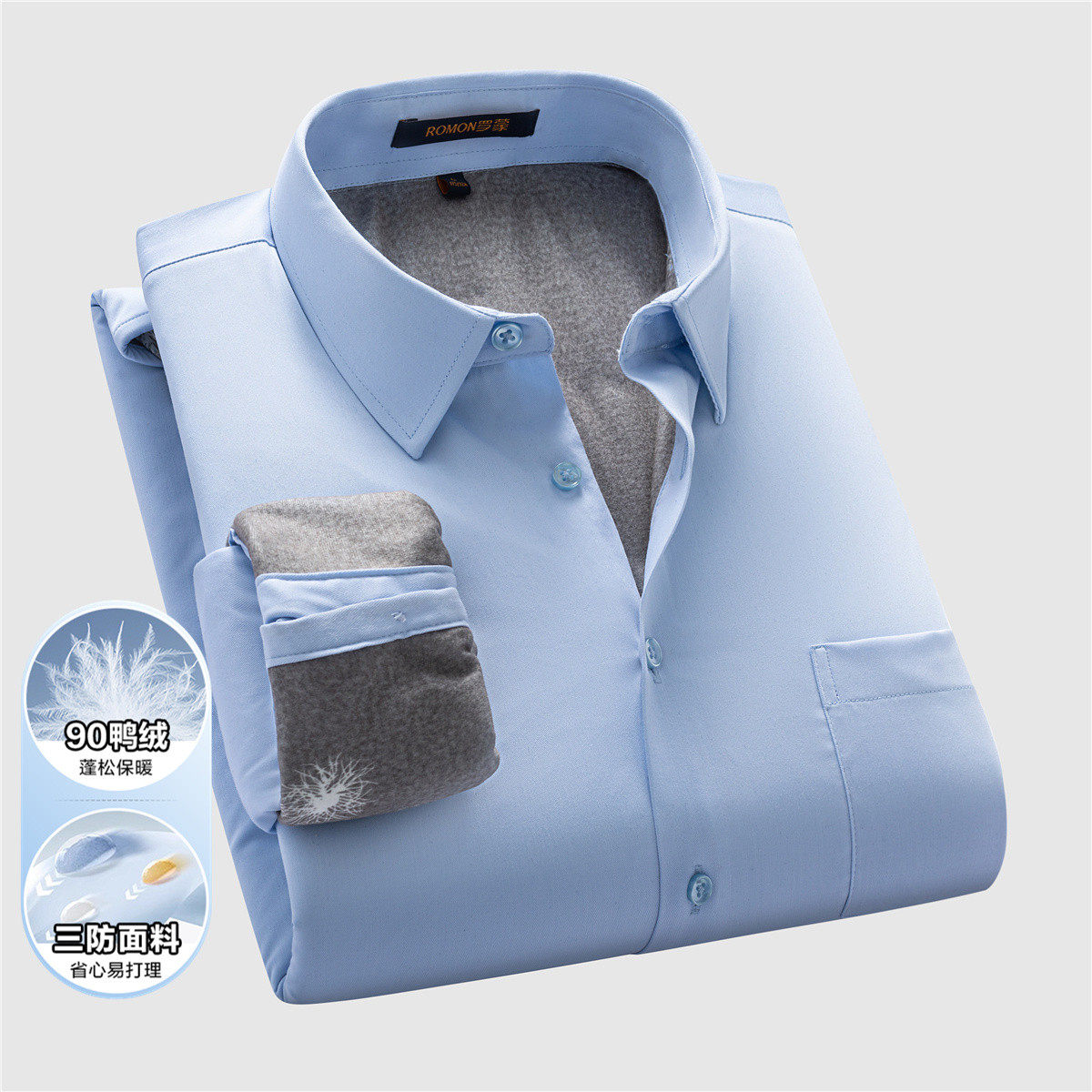 罗蒙秋冬男士三防长袖衬衫防泼水防污保暖加厚寸衫90鸭绒羽绒衬衣