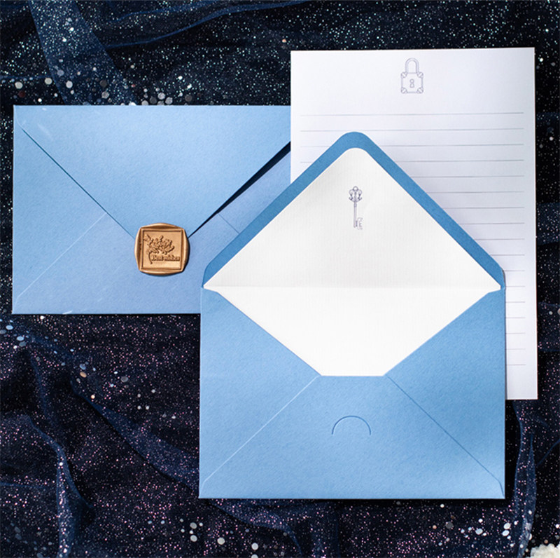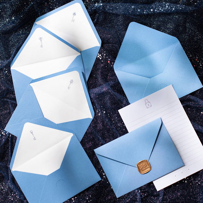 信封定制烫金logo高端蓝色海蓝之钥信封信纸套装牛皮纸信封定做会员卡套印刷高级感邀请函可印广告