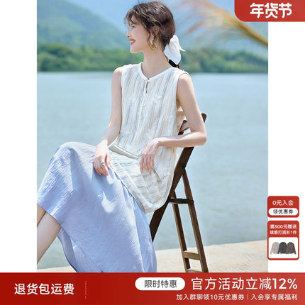 XWI欣未海边度假风假两件无袖连衣裙女夏季晕染立体蝴蝶拼接长裙
