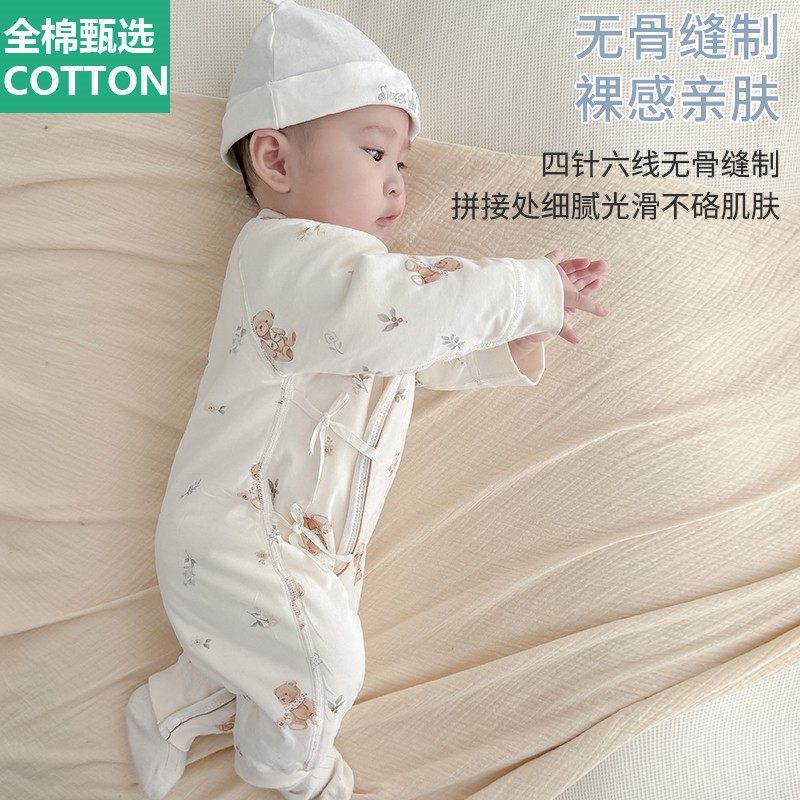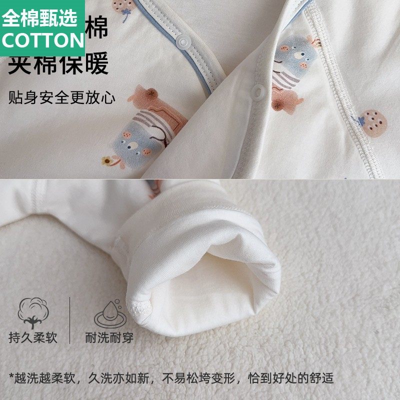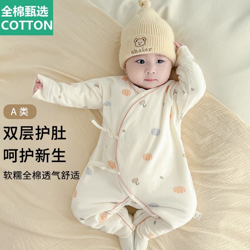 全棉母婴纯棉夹棉婴儿连体衣服春秋冬季薄棉新生儿宝宝护肚贴身打