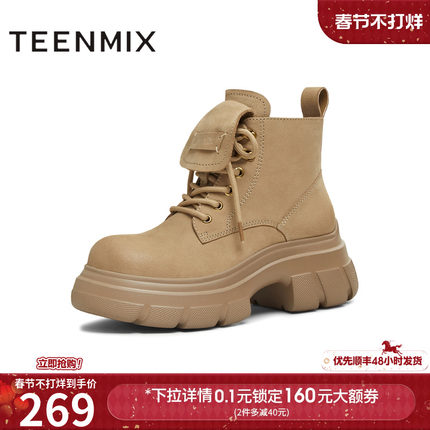 天美意厚底增高户外工装靴加绒马丁靴女鞋子休闲短靴2025冬季新款