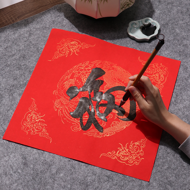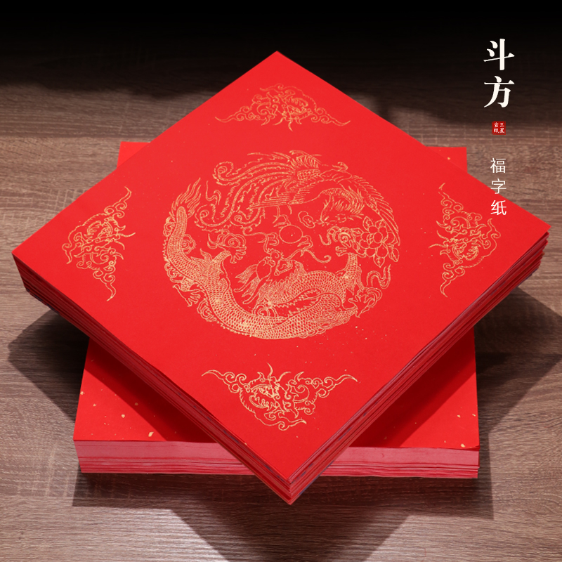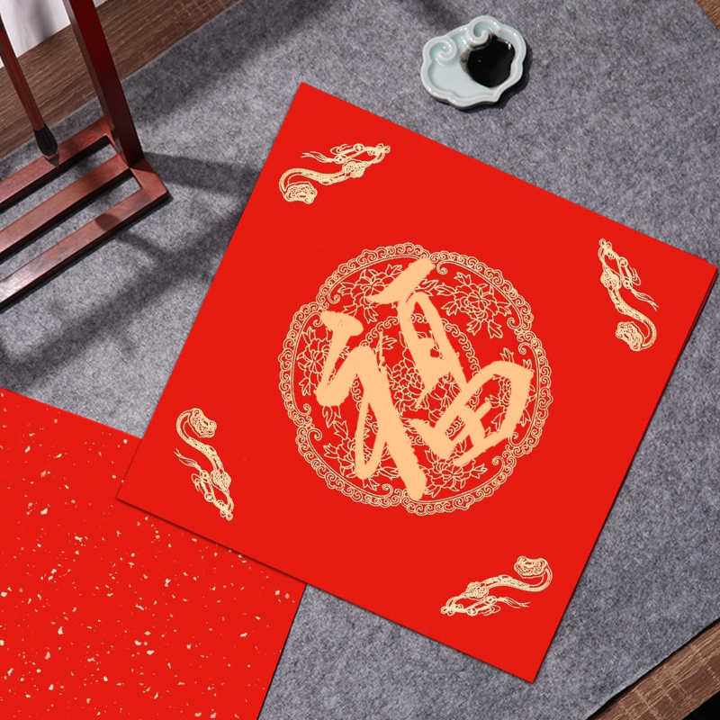 宣纸斗方空白福字春联纸手写福字万年红书法纸作品纸加厚洒金春节100张大门过年写福字的红纸
