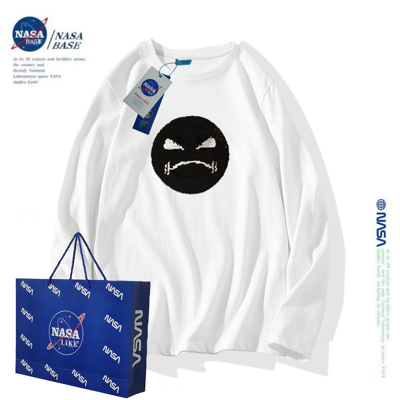 NASA联名情绪T恤春秋款男童长袖纯棉重工炸街亮片笑脸中大童上衣