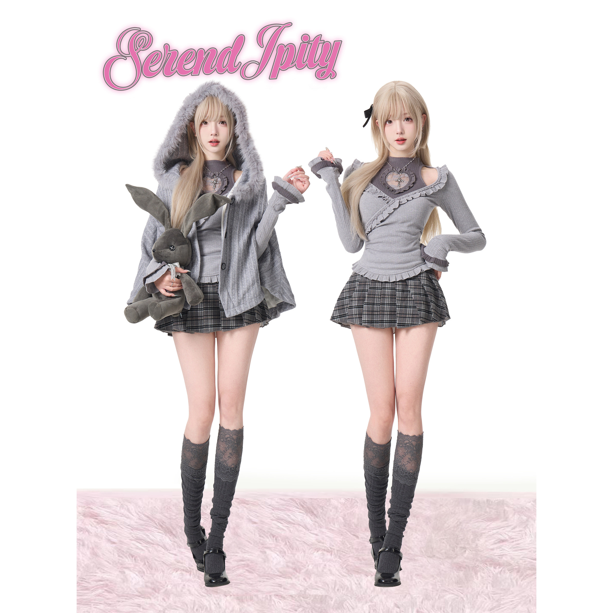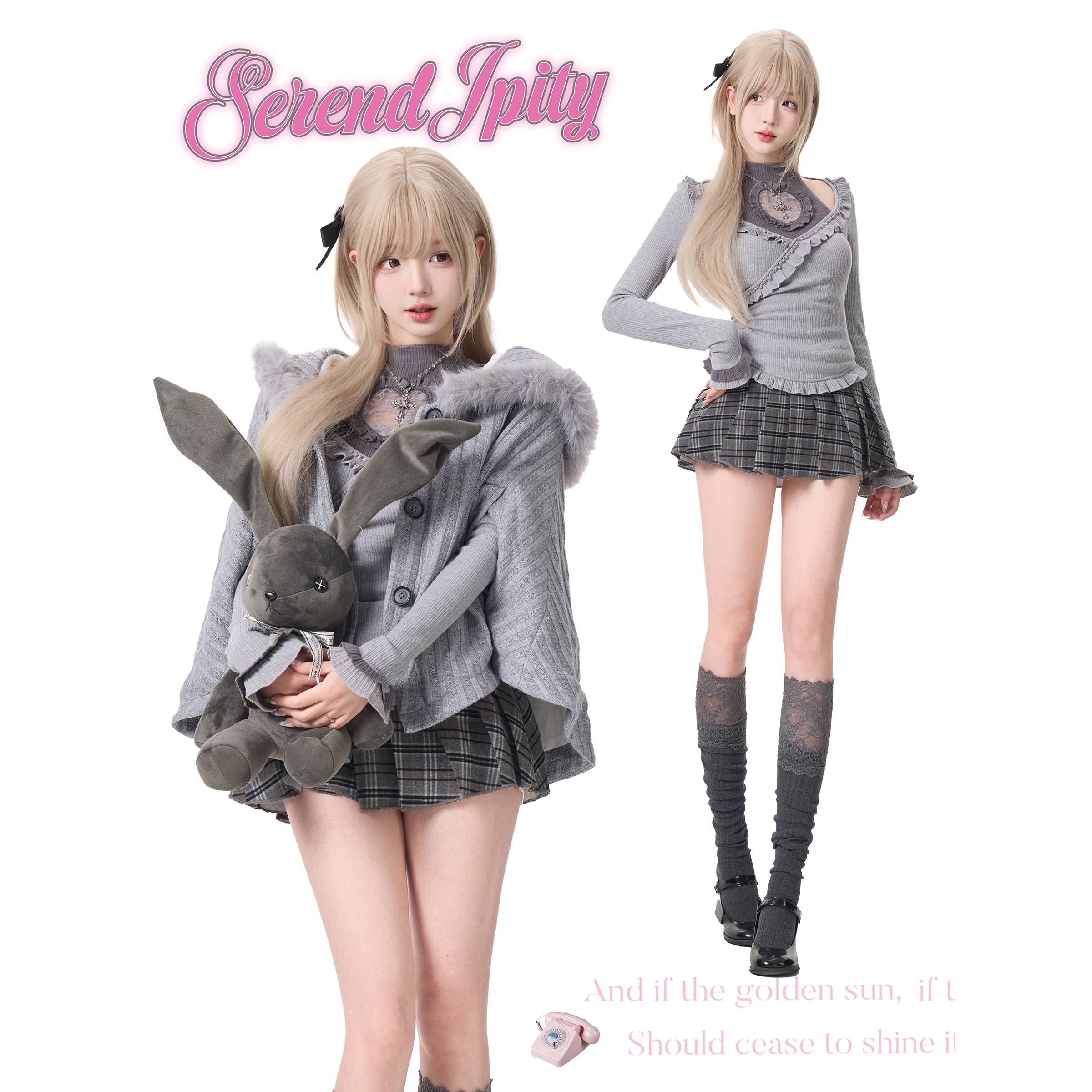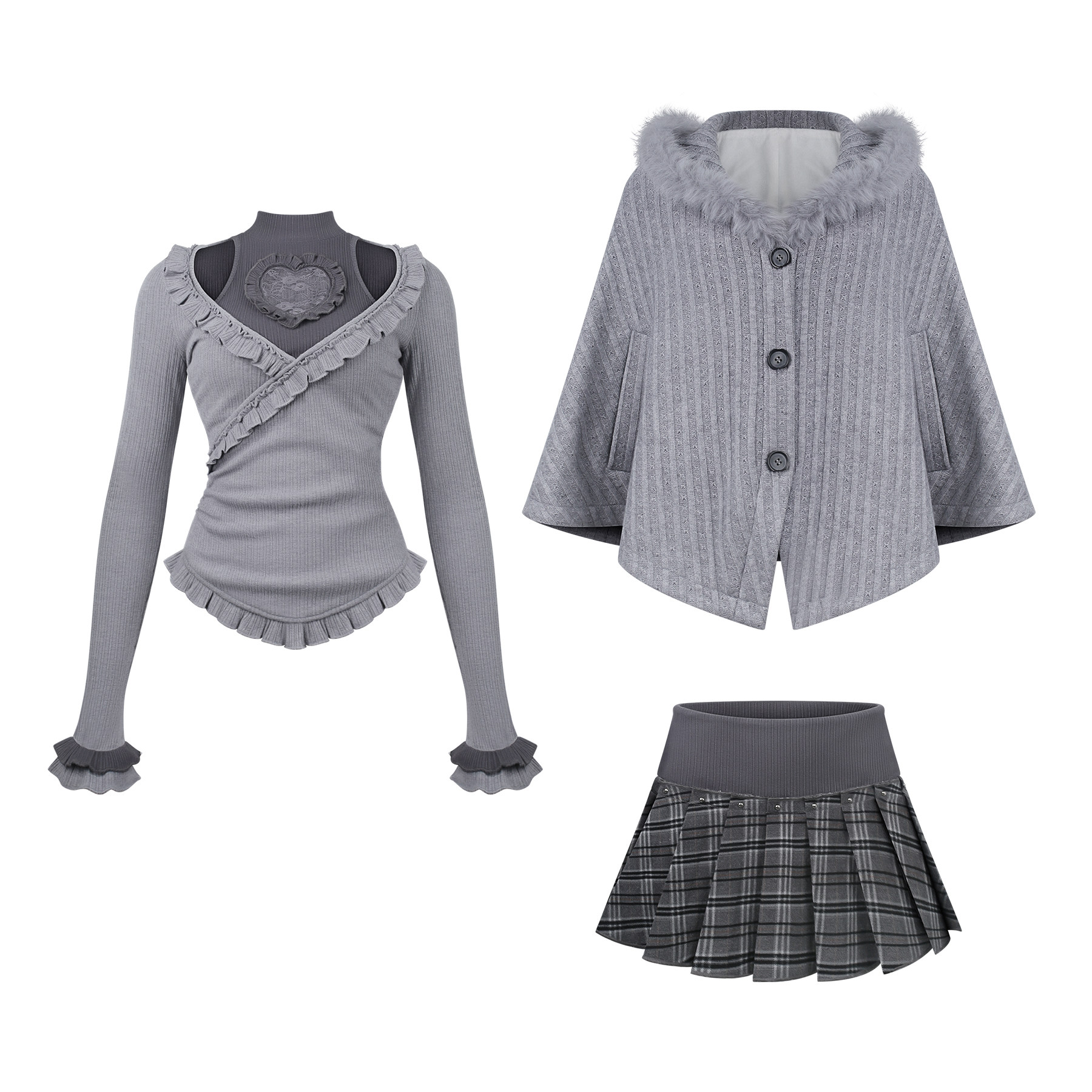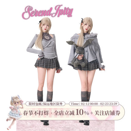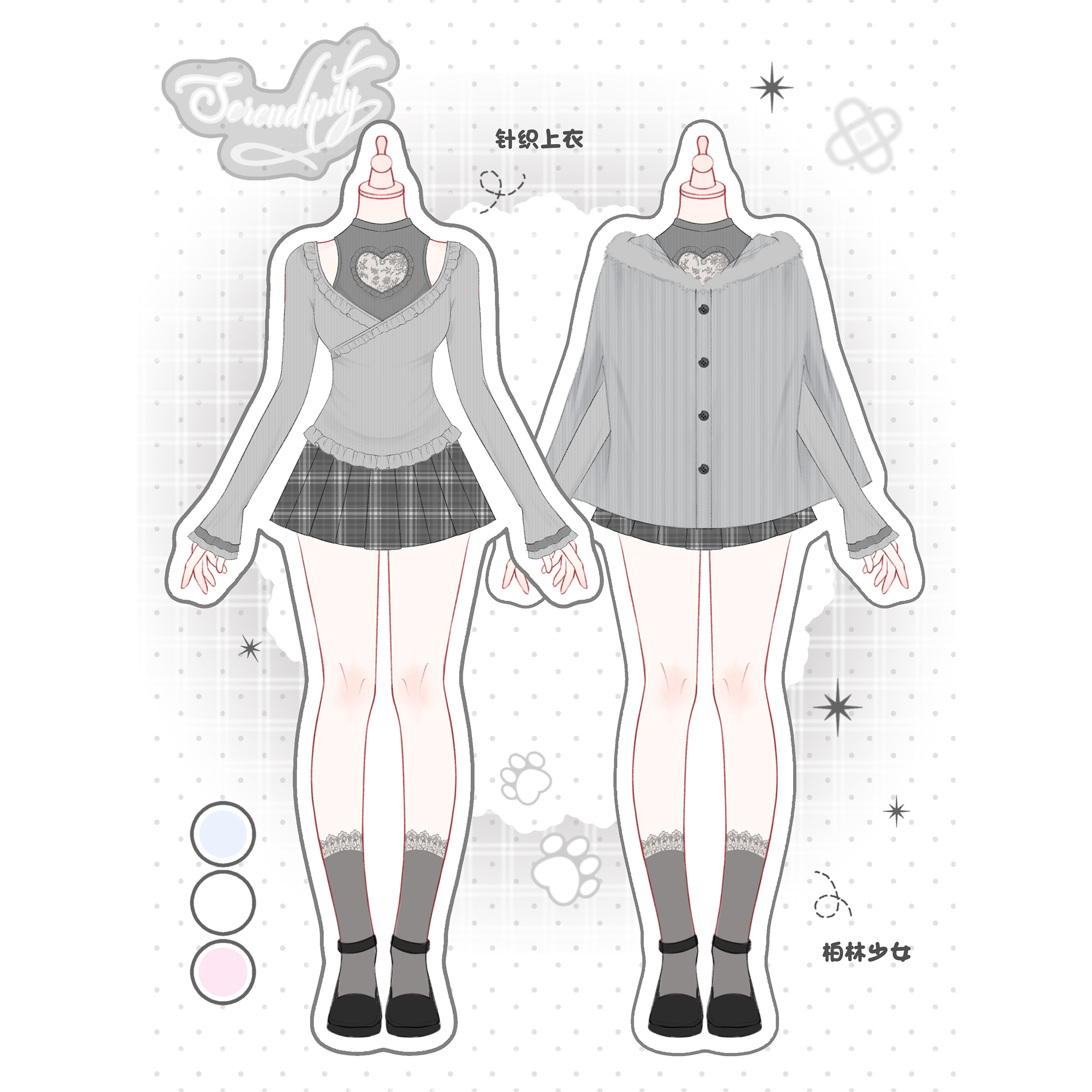 少女椰子【日常系】柏林少女 灰色针织上衣+灰格纹短裙+针织外套
