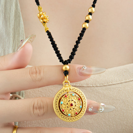 古风罗盘镂空五福圆满毛衣链高档可调节优雅古典福禄黑绳沙金项链
