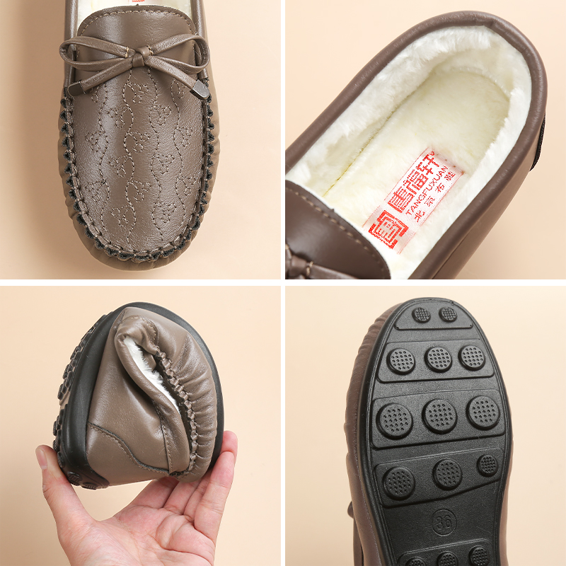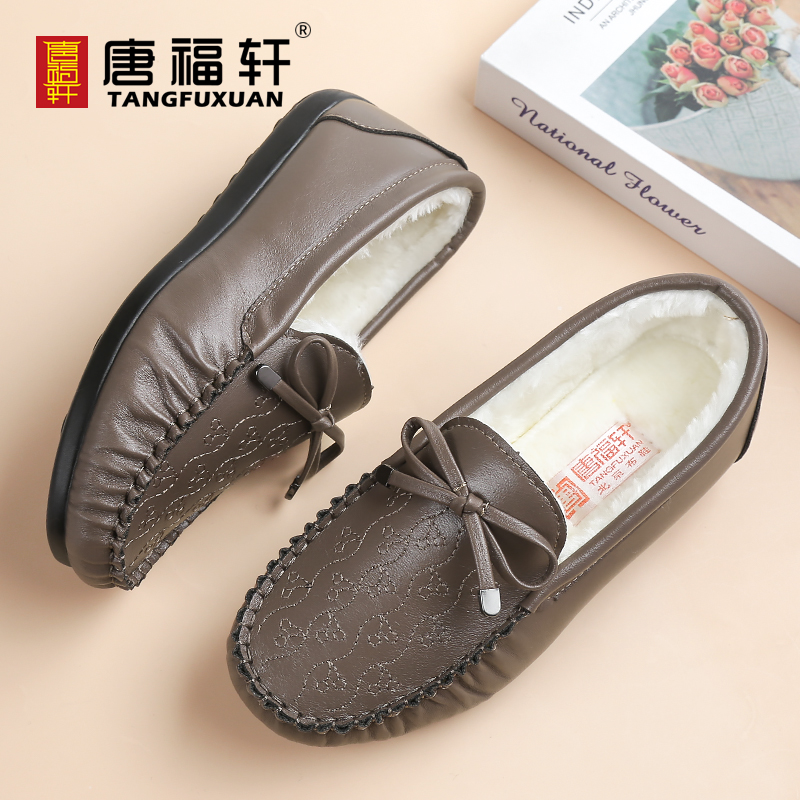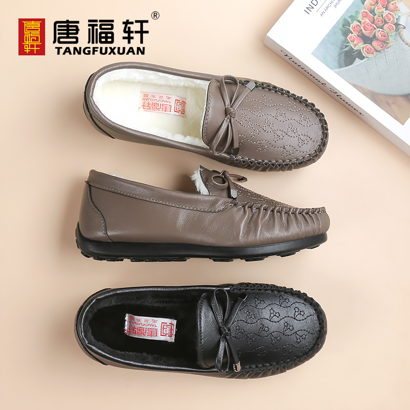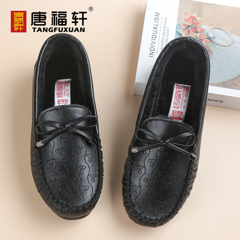 唐福轩休闲女鞋秋冬季新款豆豆鞋平底中老年妈妈二棉鞋子软底布鞋