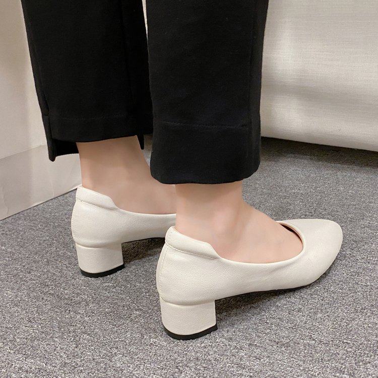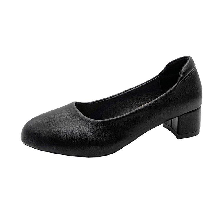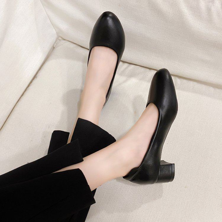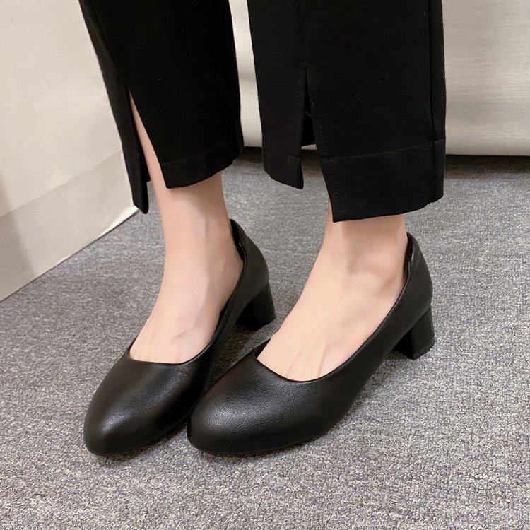 粗跟工作鞋女职业黑色软底舒适中跟女士上班面试鞋子圆头3-5厘米