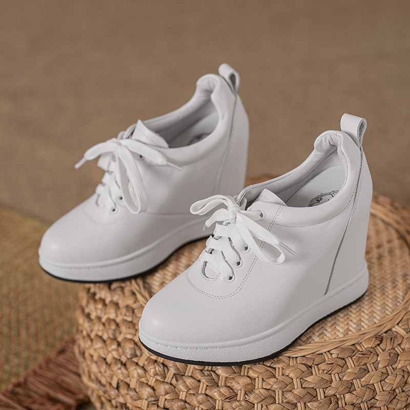 北西迪白色11CM内增高单鞋女春真皮松糕底百搭坡跟厚底休闲小白鞋