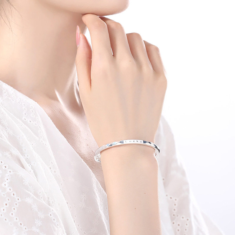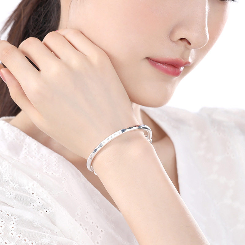 S999足银手镯女水立方菱形时尚个性学生小众设计冷淡风2024新款潮