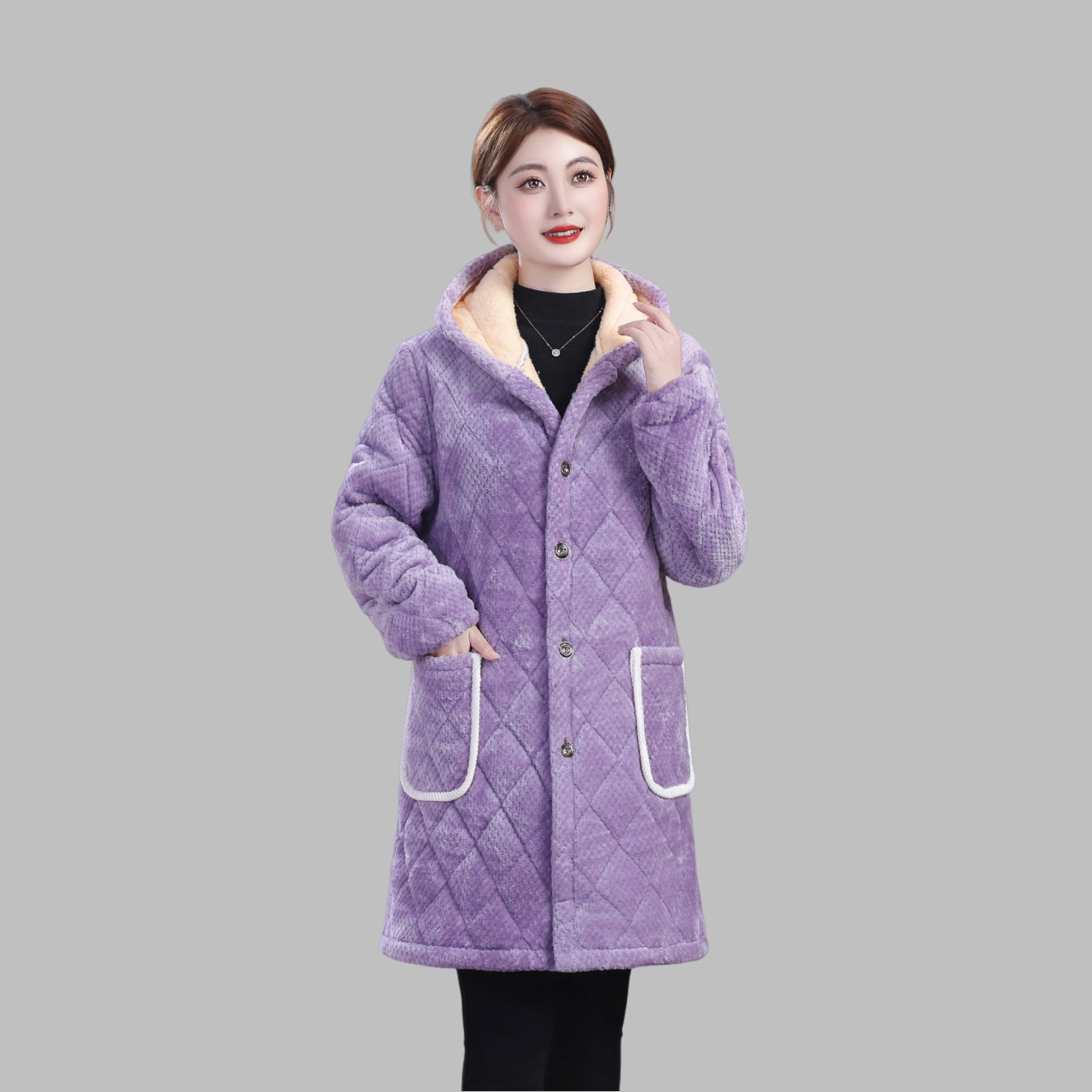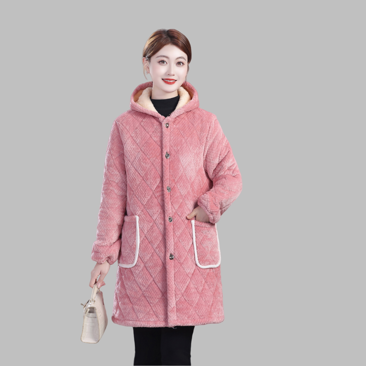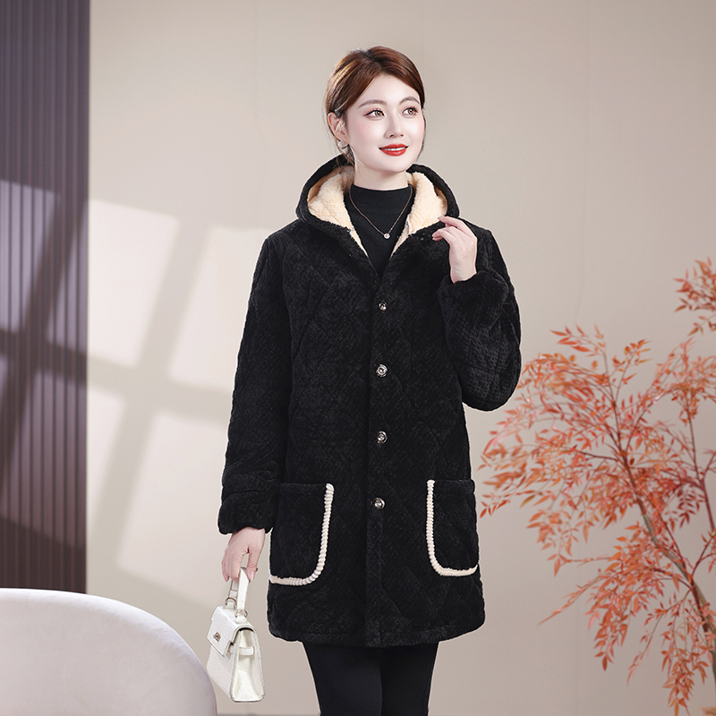 冬季棉服女加绒罩衣中长款耐脏宽松保暖大码棉袄妈妈装家居服外套
