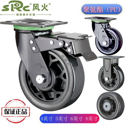 SRC风火脚轮4/5/6/8寸重型轮万向轮黑PU聚氨酯刹车单轮推车板车轮