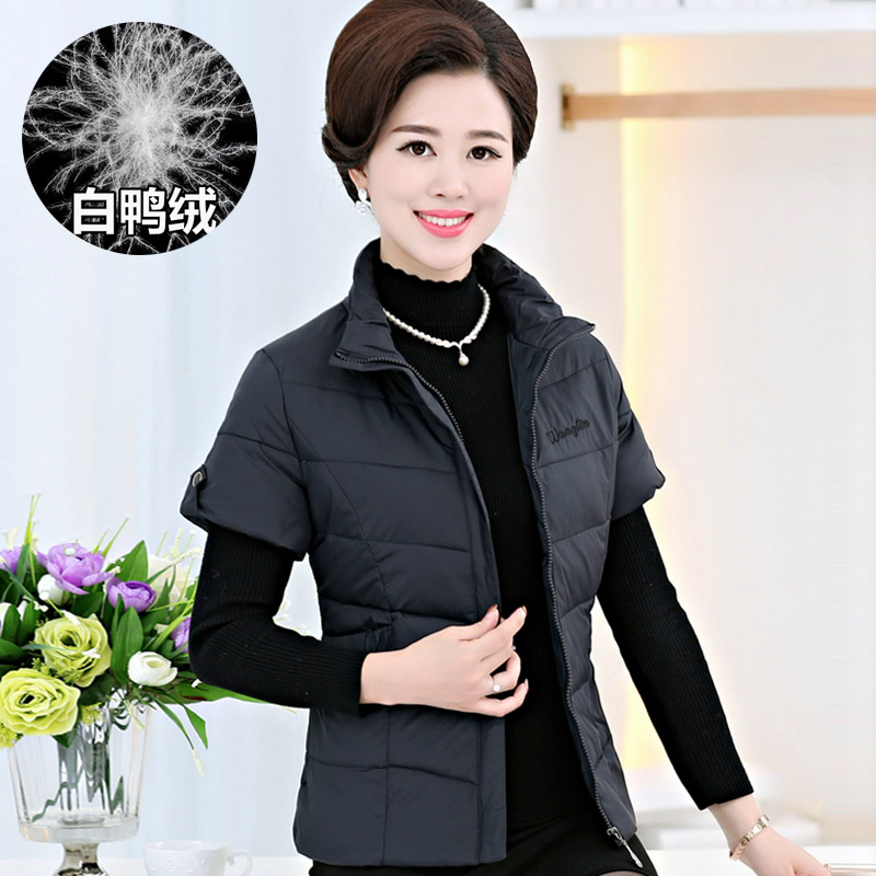 羽绒马甲女中老年人羽绒服秋冬妈妈装外穿短袖背心立领白鸭绒外套