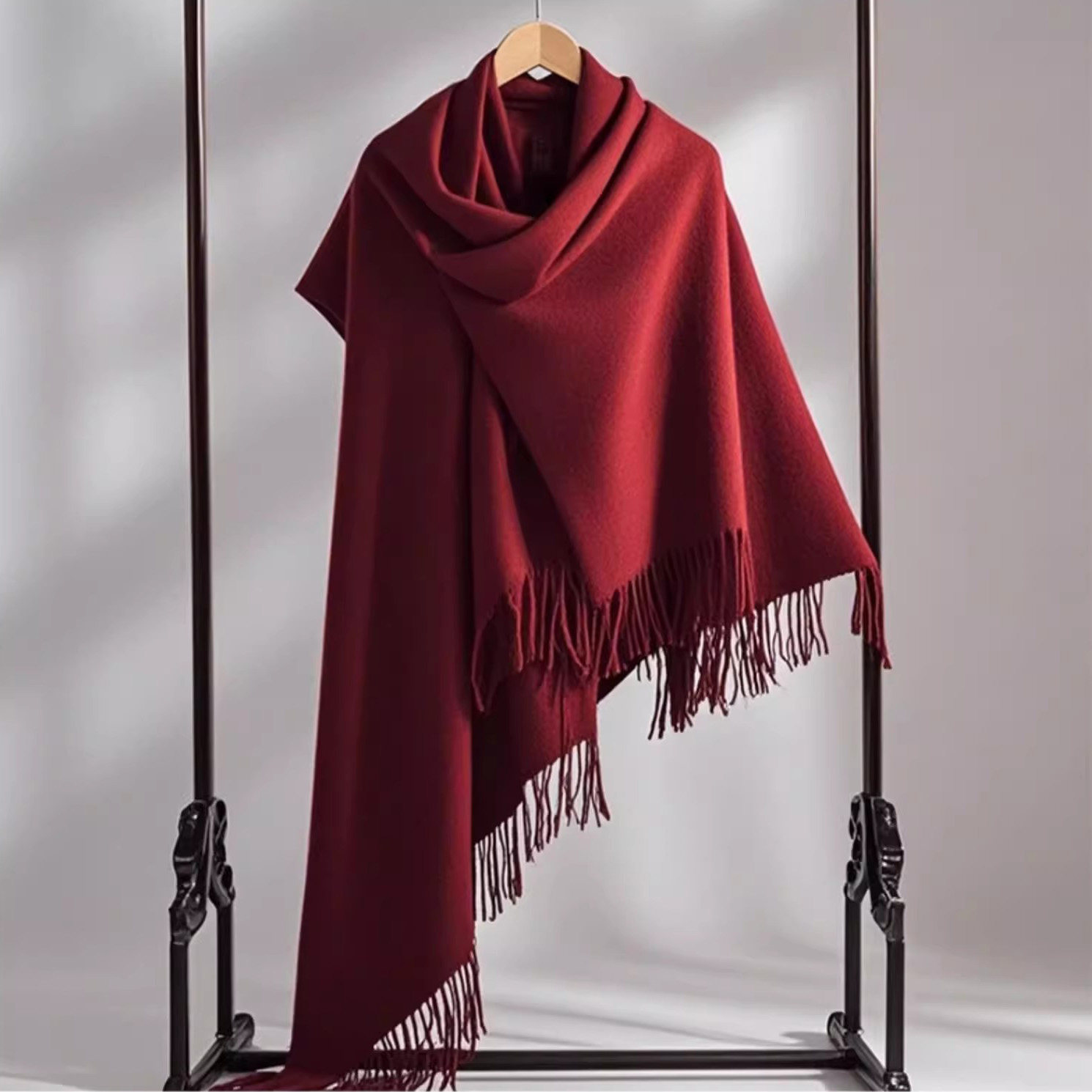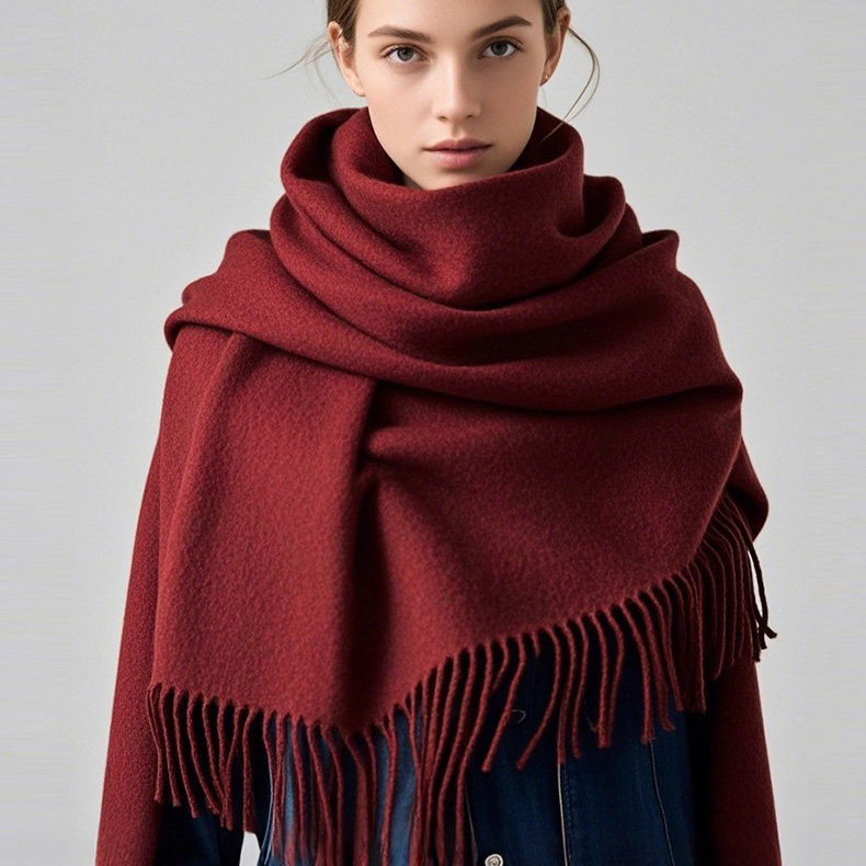 鄂尔多斯市纯山羊绒围巾冬加厚保暖大披肩女外搭高端酒红色毛毯巾