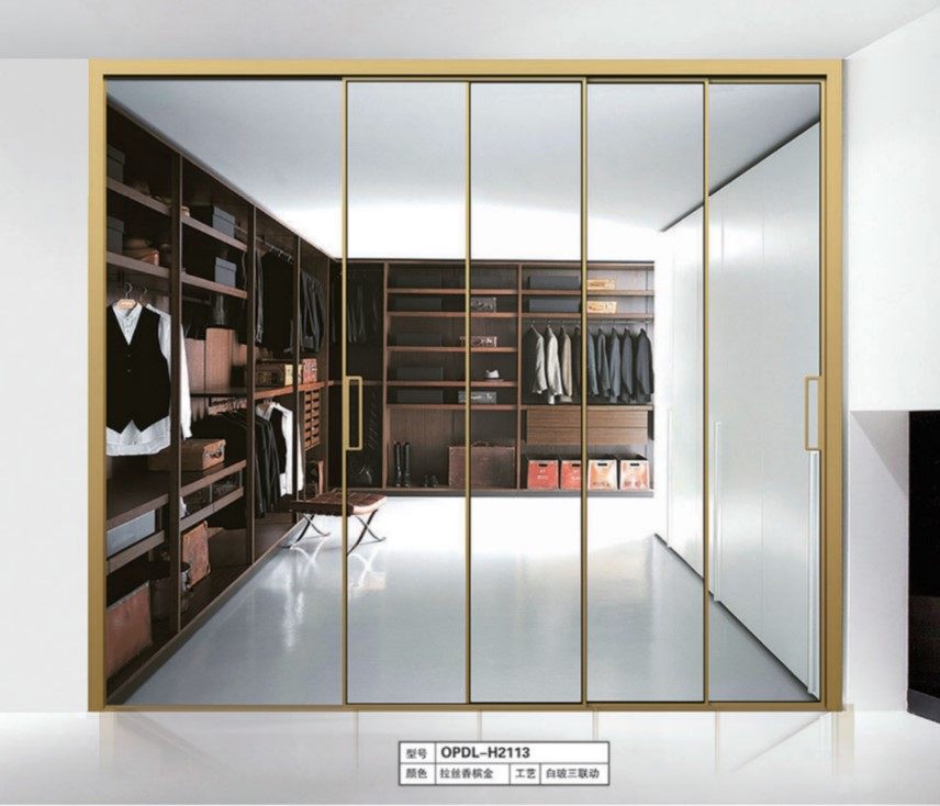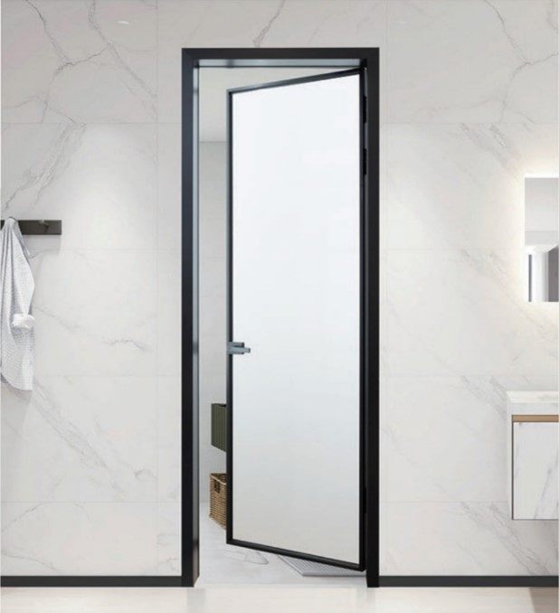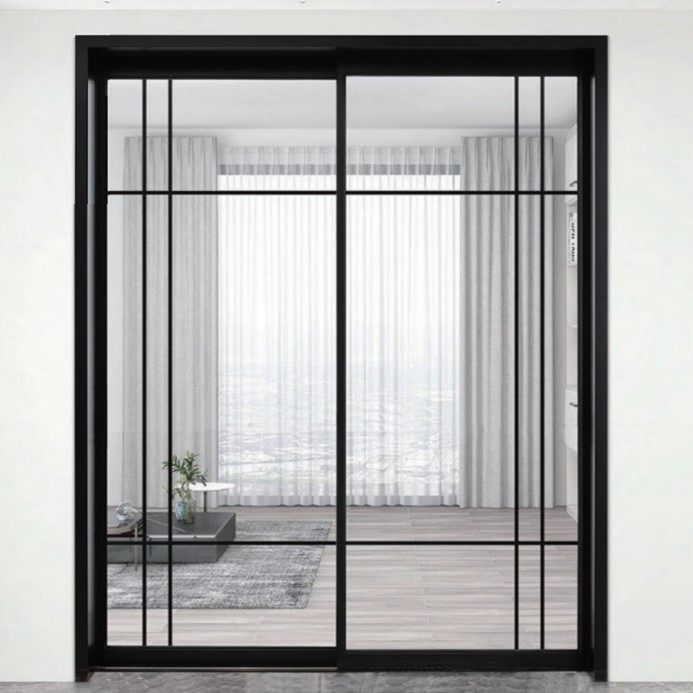 新疆极窄推拉门厨房卫生间玻璃隔断阳台钛镁铝合金移门黑框三联动