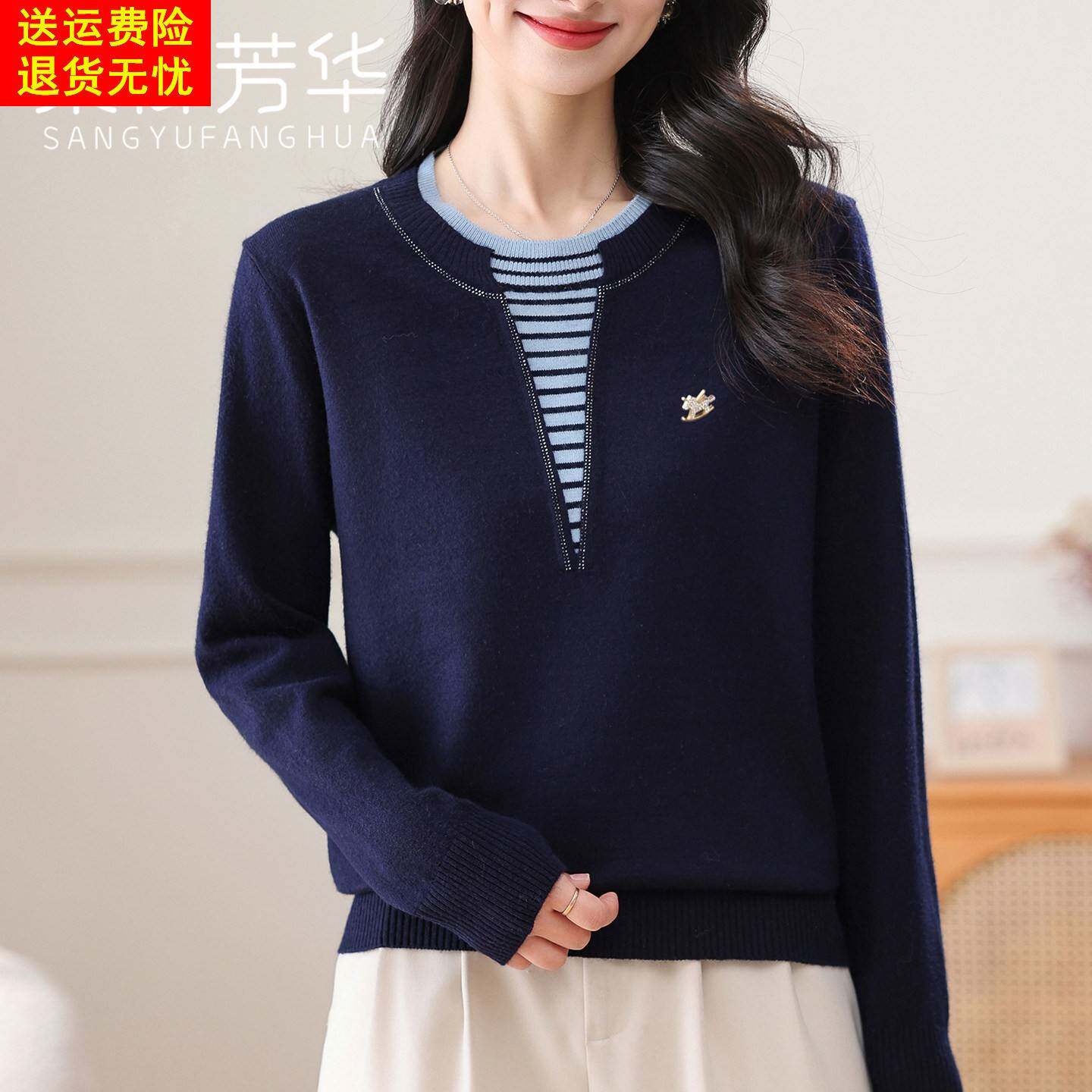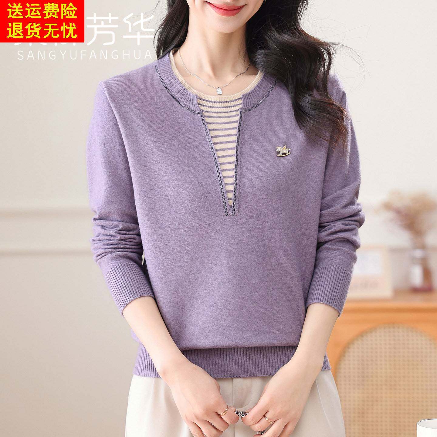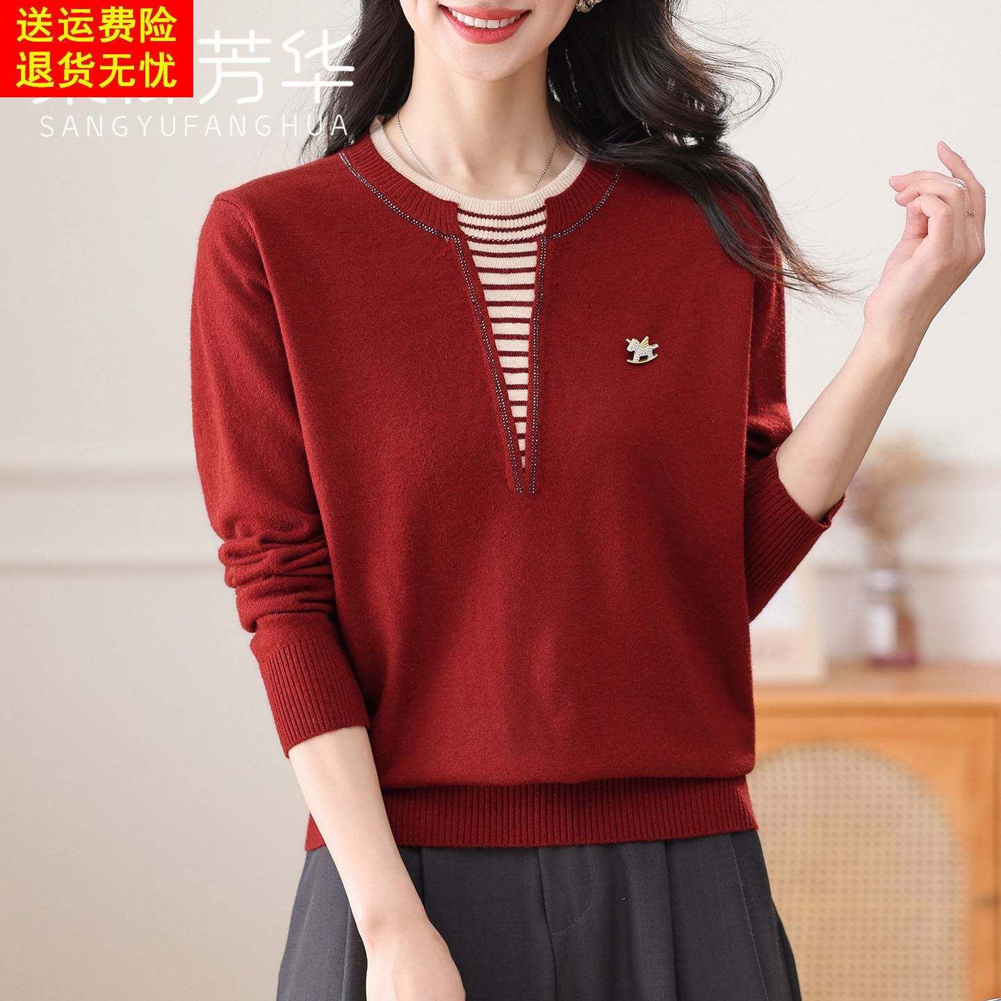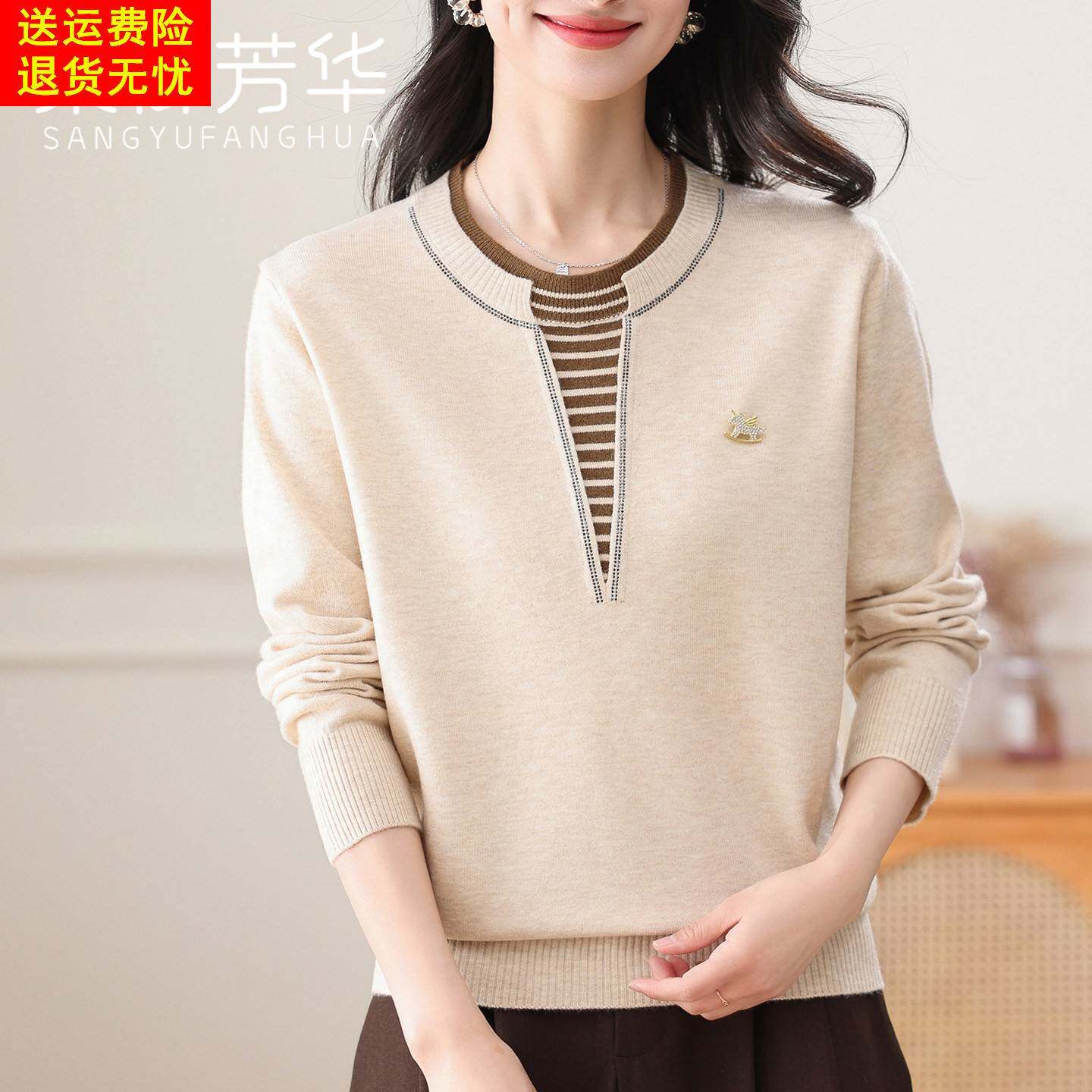 时尚妈妈春装洋派打底衫上衣中老年女装2026新款毛衣春秋针织小衫