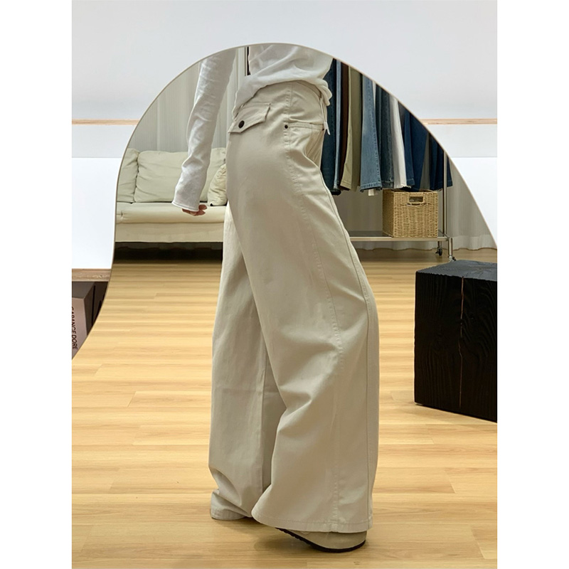 大码时尚美式米杏色工装牛仔裤女秋冬新款高腰宽松垂感直筒阔腿裤