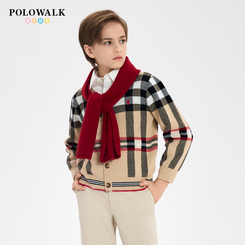 POLOWALK童装男童假两件毛衣秋冬新款中大童长袖针织衫百搭潮