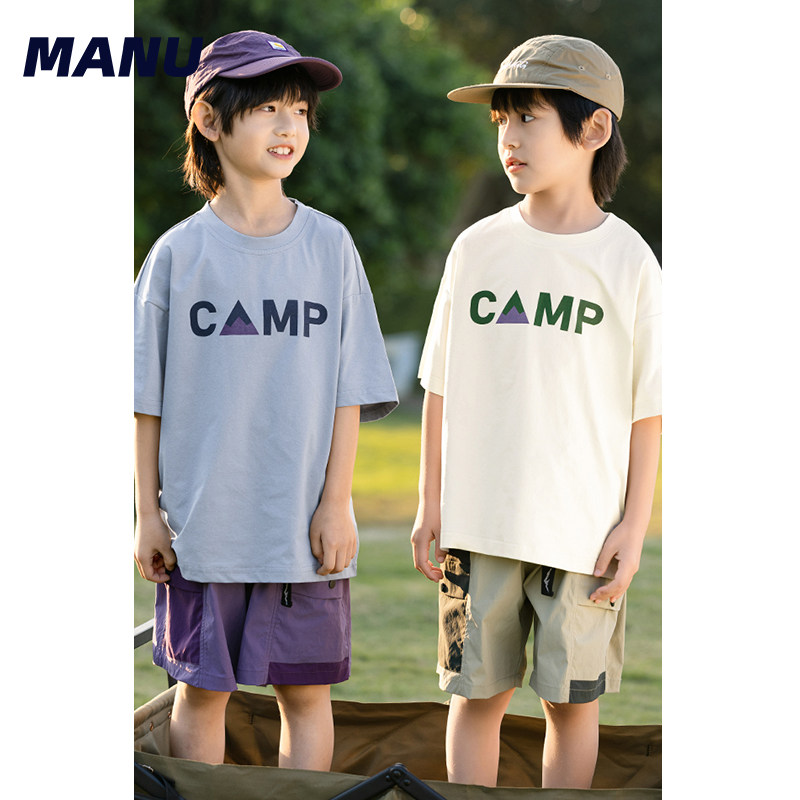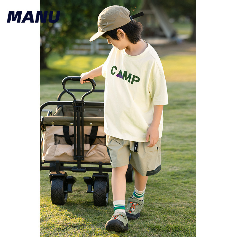 MANUKIDS童装男童2025夏季山系户外印花速干日系中大童短袖T恤