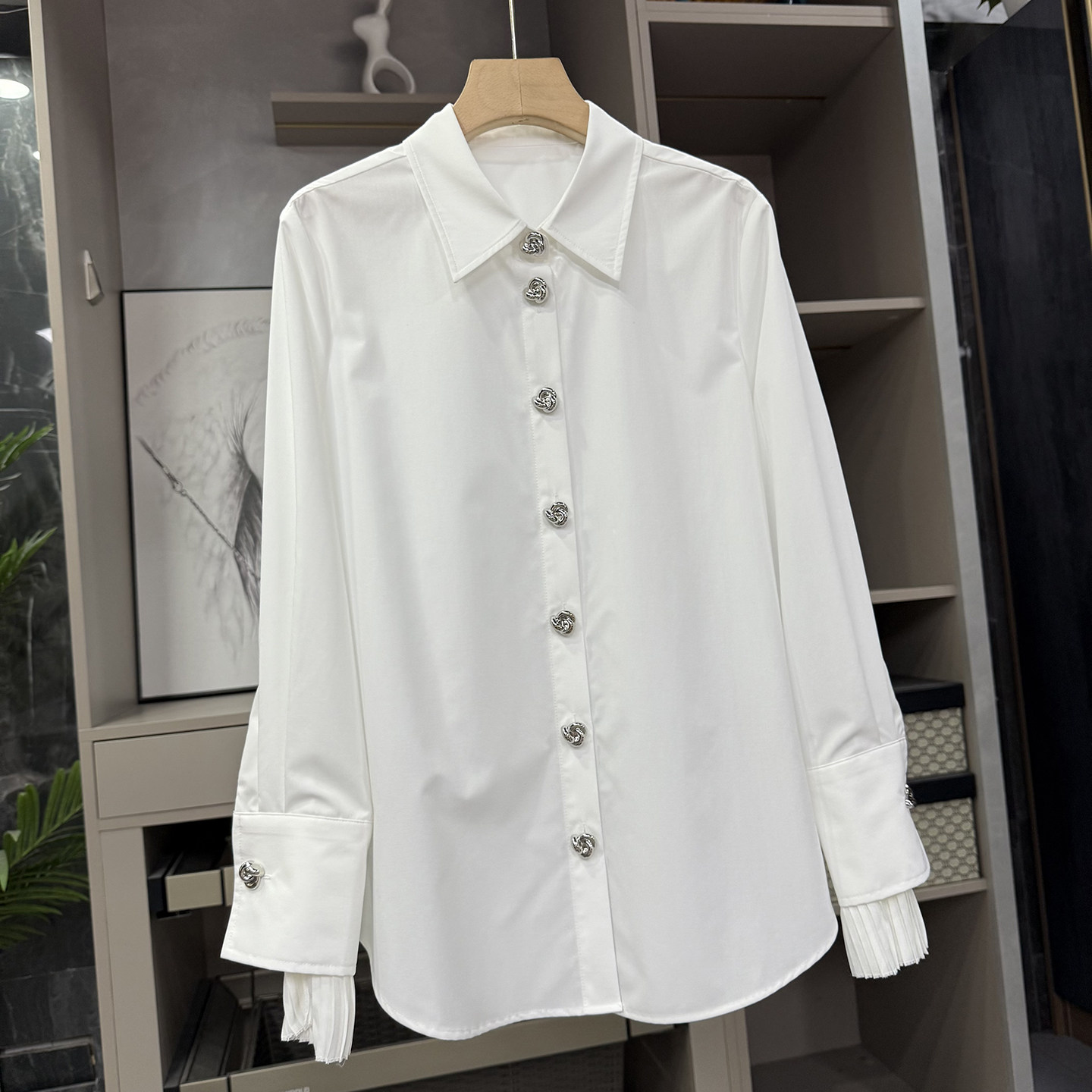 品质货!宽松百褶袖白衬衫上衣
