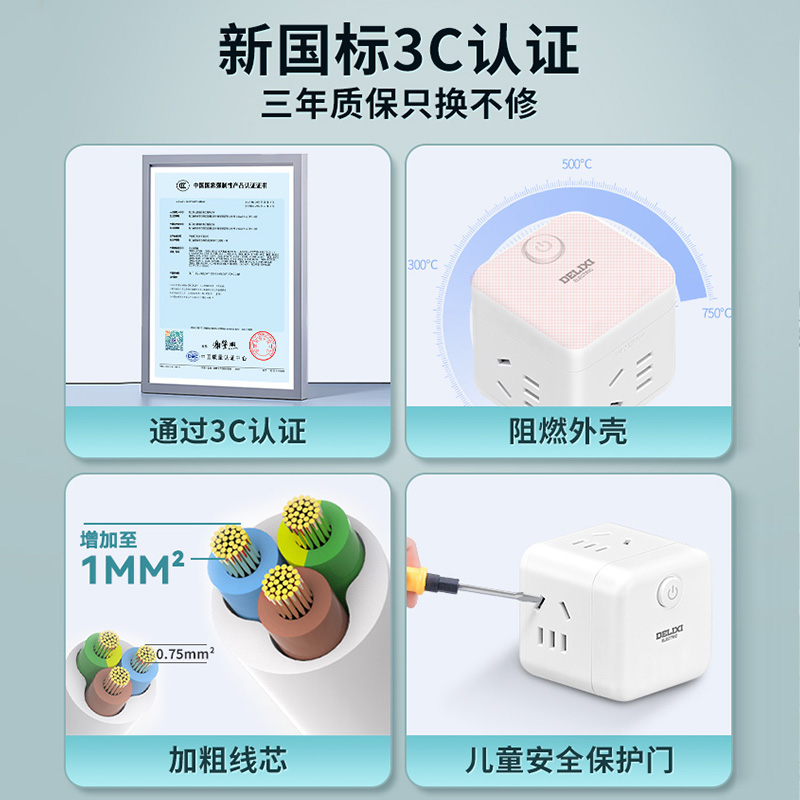 德力西USB插座插排多孔插板排插拖线板多功能转换器插头魔方插座