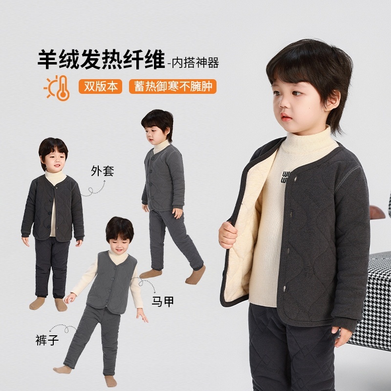 。儿童羽绒棉服女童保暖加绒内胆男童轻薄棉衣中大童秋冬加绒棉袄