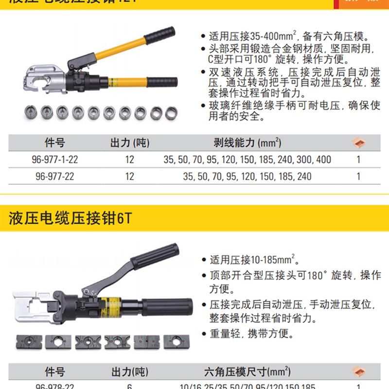 进口史丹利手动液压电缆压接钳6吨/12T压线钳端子钳96-978/977-22