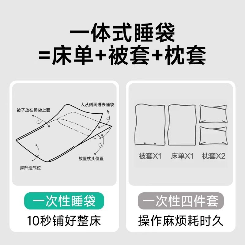 医护一次性睡袋酒店隔脏旅游旅行双人单人床单被罩枕套四件套加厚