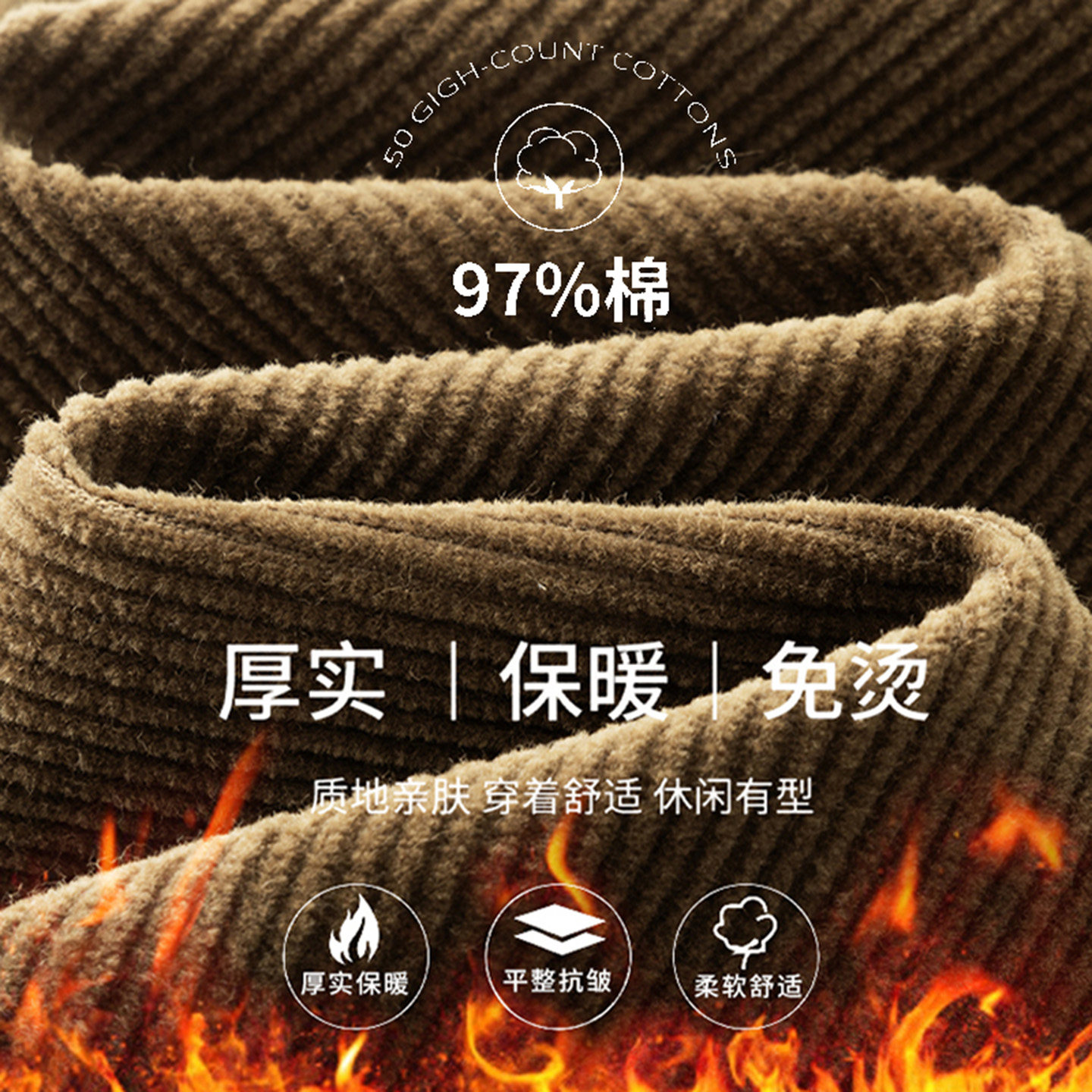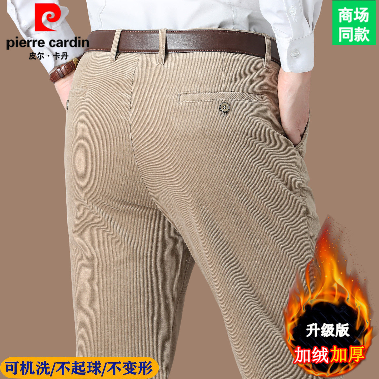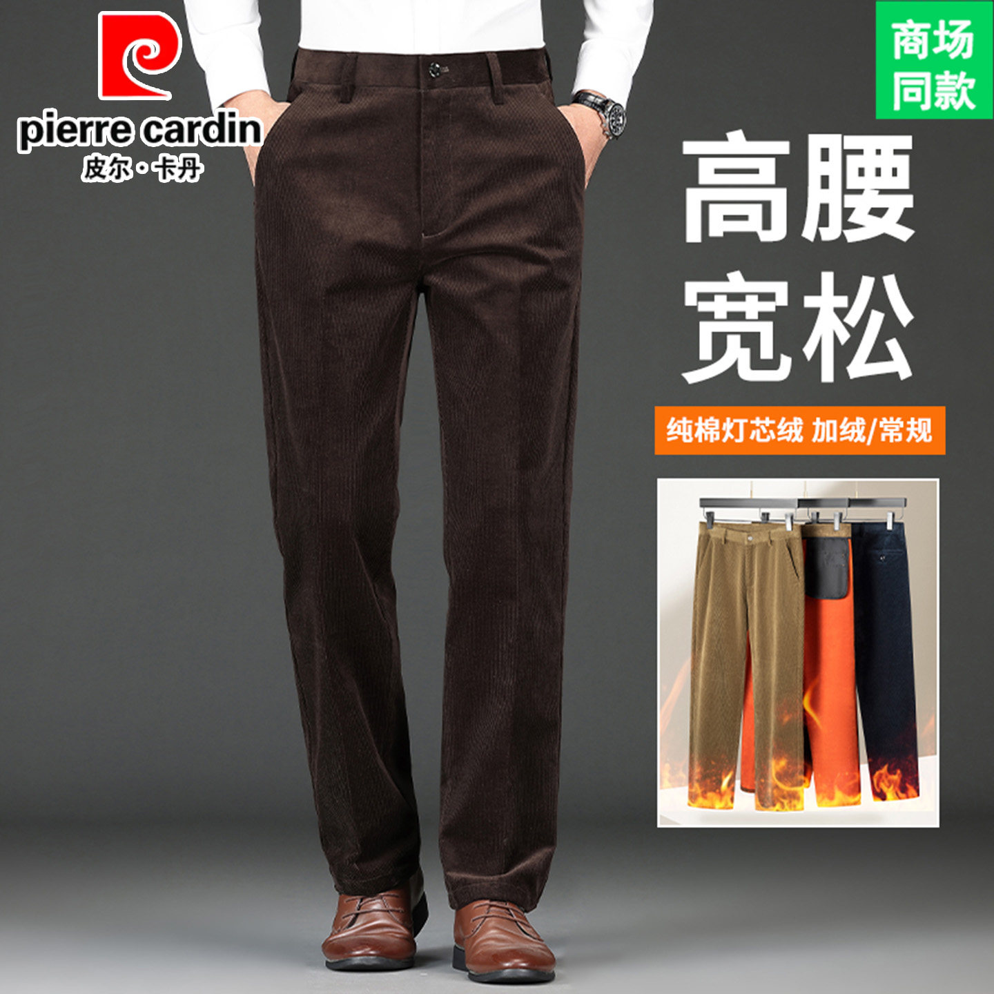 皮尔卡丹纯棉灯芯绒男裤加绒加厚高腰宽松休闲裤秋冬男士条绒长裤
