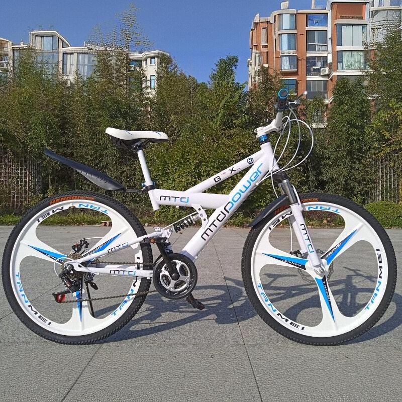 双减震山地车26寸24寸男女变速单车双碟刹带货架可载人山地自行车