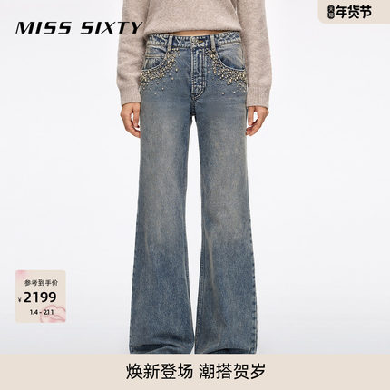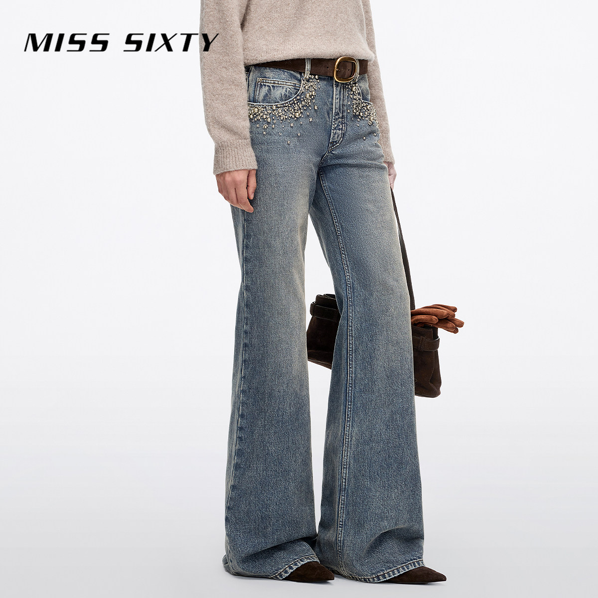 【闪耀派对】【保暖磨毛】Miss Sixty2025冬季新款牛仔裤女喇叭裤