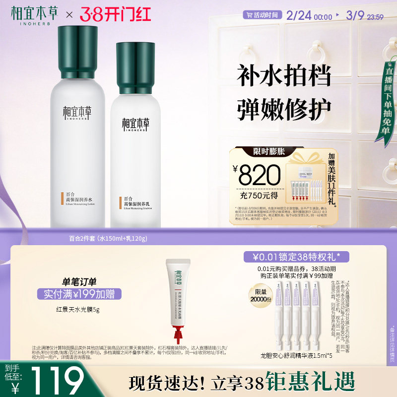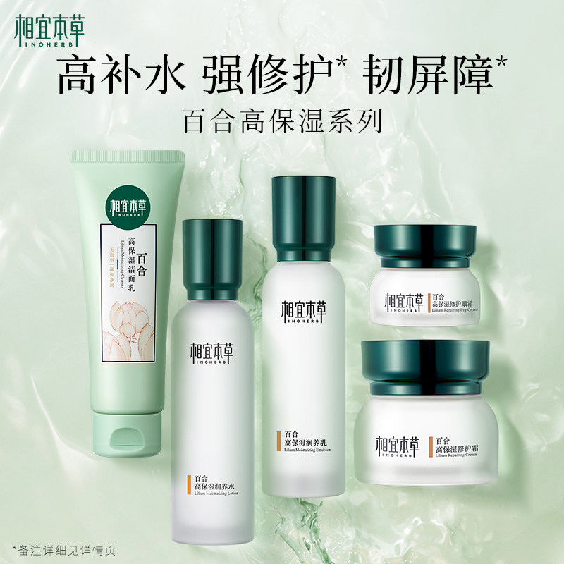 相宜本草百合高保湿护肤套装清爽润养补水修护滋润水乳护肤品正品
